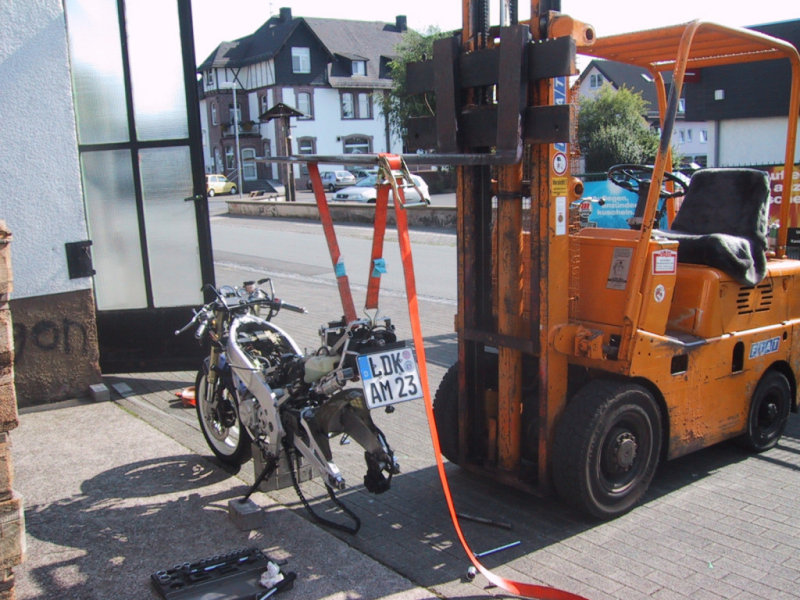 Und in Sachen Motorrad aufbocken, die Anfänge ohne Ständer :biggrin:: -