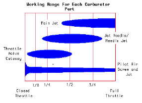 • Habe hier im Mikuni Handbuch (zwar nur) für die großen VM20 etwas Interessantes gefunden, dass den Einfluss des Leerlaufsystems durch alle Drehzahlbereiche hindurch unterstreicht und nicht nur im/um den Leerlauf herum, wie oft angemerkt und auch in so mancher Einflussgrößenübersicht gezeichnet. Kapitel 3.1 und 3.2 und die Grafik Fig.5 dazu: http://www.mikuni.com/pdf/vmmanual.pdf