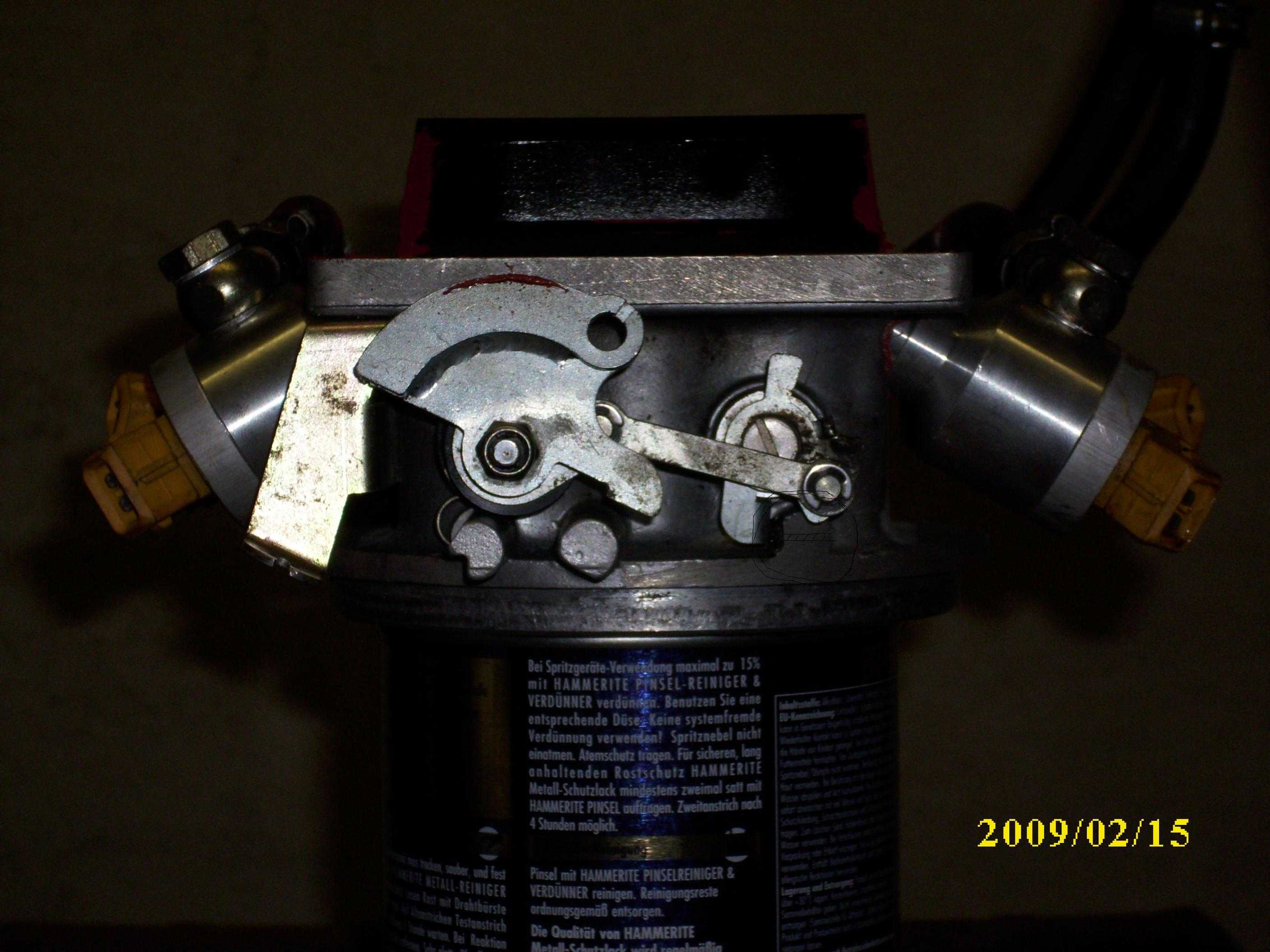 der Gaszug dran) und rechts die Sekundärklappe , das Blechteil welches nach unten zeigt ,