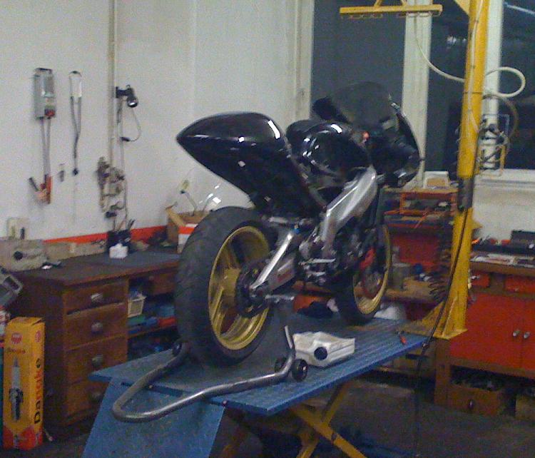 die ersten 2 Stunden haben wir damit verbracht, den Kühler dicht zu kriegen, dann musste der Vergaser eingestellt werden...ich hätte fast die rechte seitenverkleidung verloren weils die schrauben einfach losvibriert hat, die Motorhalterung vorn (zuhause noch mit 8er Inbus + 30cm verlängerung angeknalllt wie n verrückter) losvibiert und ich hab ne Feder vom Auspuff verloren.