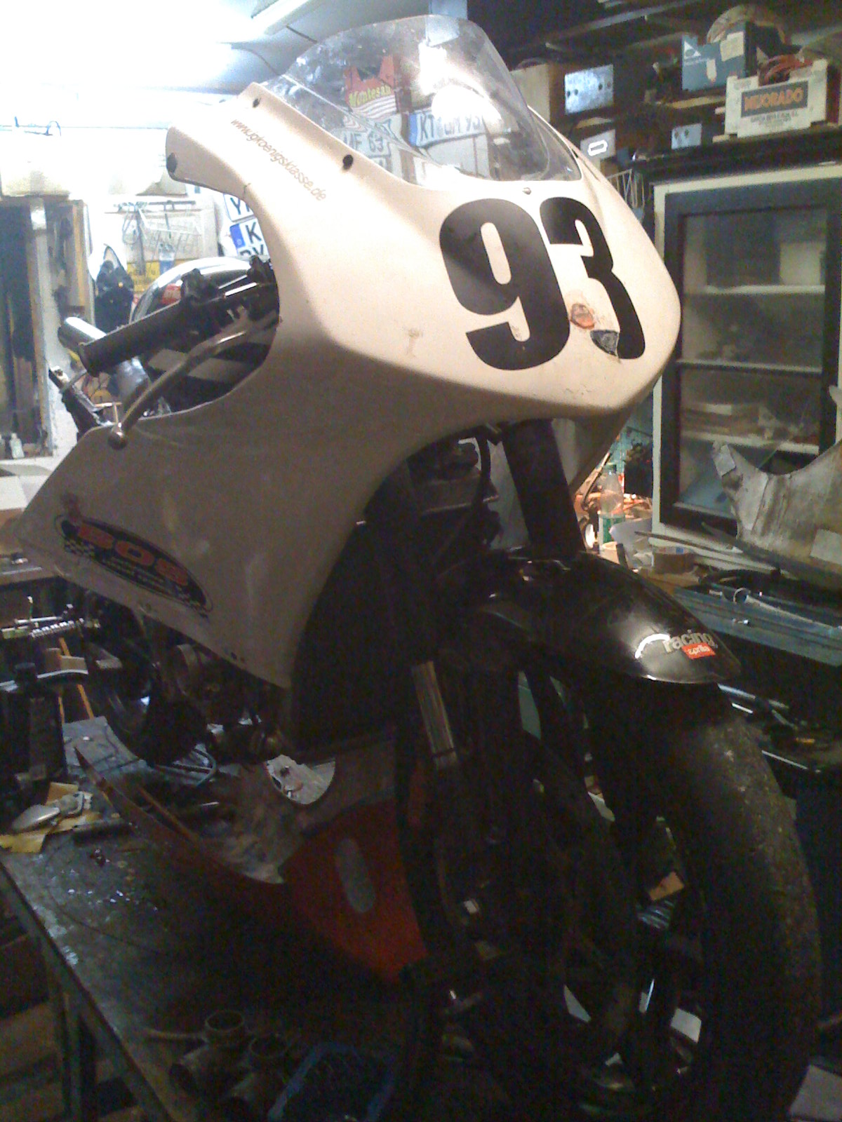 Die Honda Verkleidung ist mir beim Anpassen verreckt, daher gibts jetzt vorerst AF1 Serienware bis aufs Heck, das bleibt GFK.Den Motor wurde gestern fertig und sprang auf den ersten Zucker an