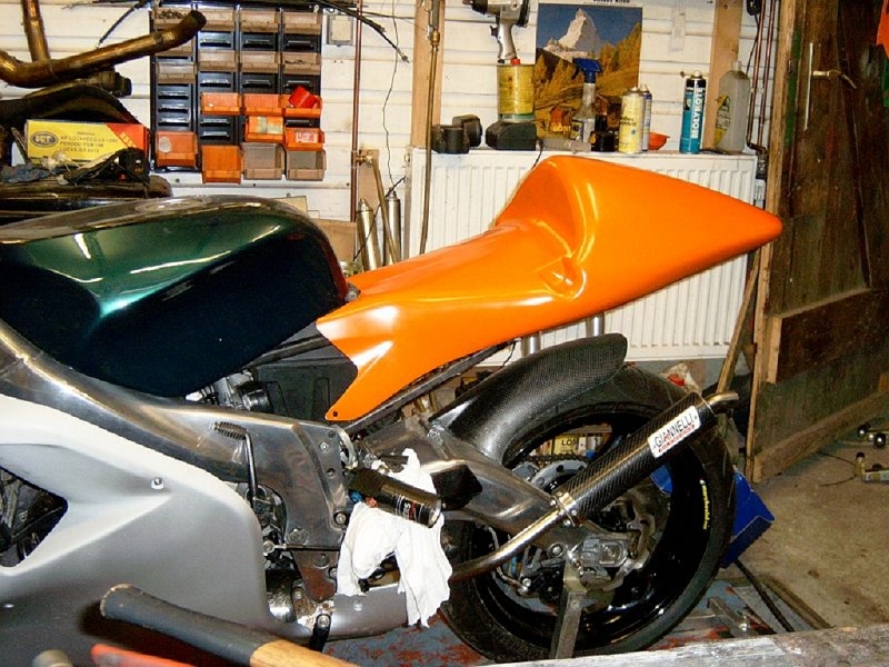 - Honda RS250 HeckZu dem Heck muss man sagen, das ich mir bissl Arbeit gemacht hab, da es "einfach" draufgeschraubt nix aussah, da die Linien nicht stimmten. Ist nun noch nicht ganz fertig. Die letzten kleinen Macken und Unebenheiten müssen noch entfernt werden.