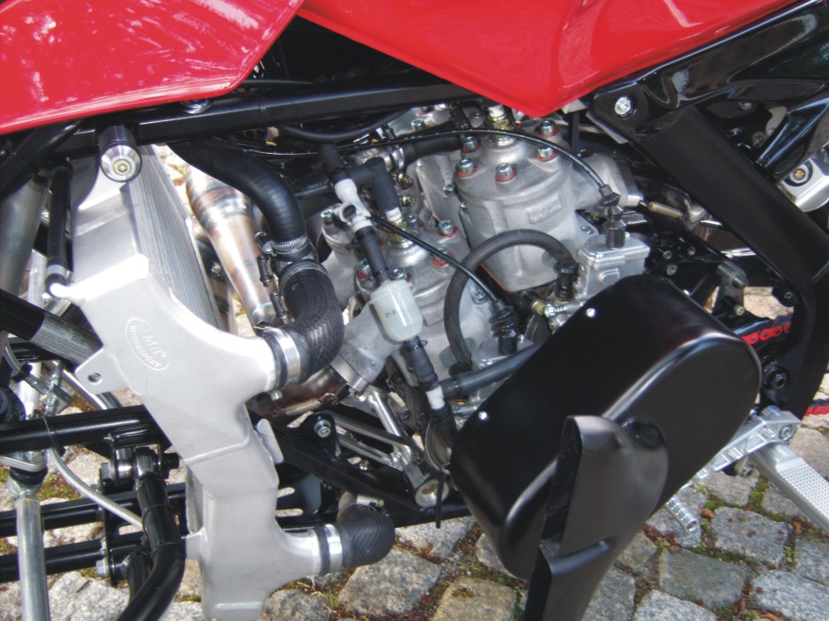 Ich habe einem Kunden eine Banshee für "Grasbahnrennen" gemacht. 425 ccm 80PS Um die Abstimmung zu machen spanne ich den Motor in eine RD weil ich nur "Schiss in der Hose" habe wenn ich das vierrädige Monster fahren soll.