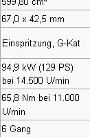 188 Kg von der GSX-R 600 K 4 - 2 x 12 Kg für nur 2 Zylinder und ohne Ventiltrieb zuzüglich 6 Kg für zusätzliche KATs.