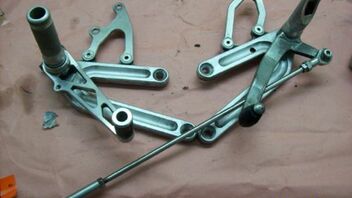 Eine Racing Fußrastenanlage Eigenbau für die RGV. Der Schalthebel ist gegen den Originalen ersetzt worden. 90€