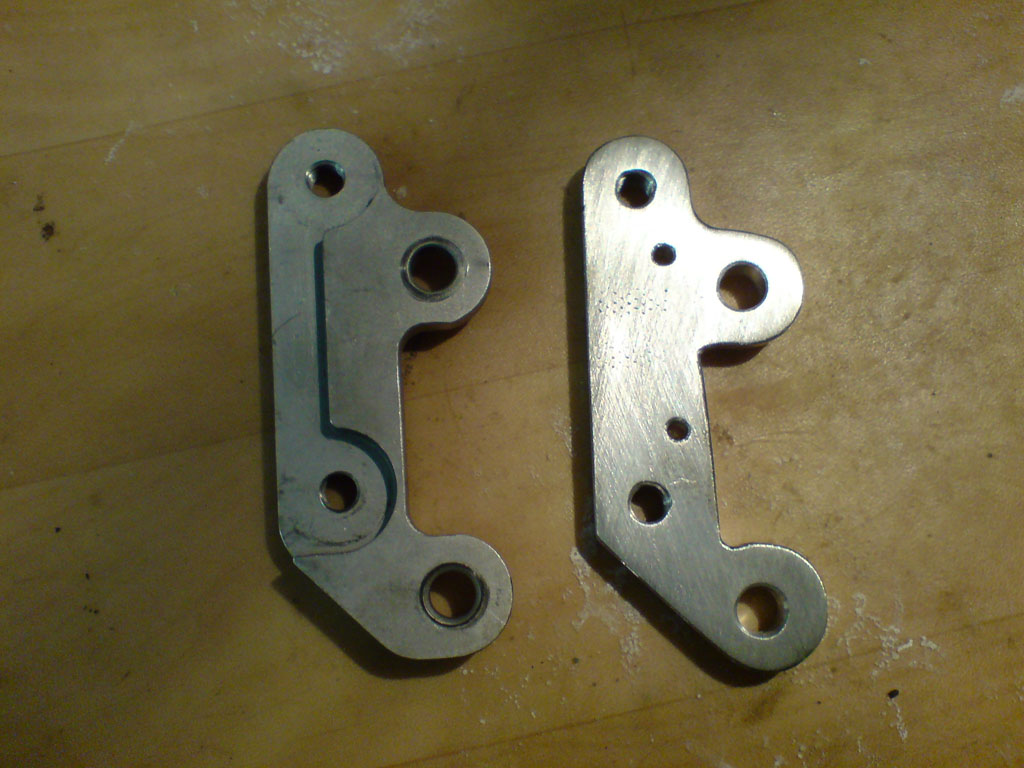 ein bekannter hat mir nun solche adapter gebaut. diese haben nicht diese aussparungen. dafür halt einfacher, mit einfachen mitteln und günstiger herzustellen und auf beiden seiten unter einander tauschbar. fall ich auf die eine seite und die dinger sind nach innen verbogen könnte ich sie einfach unter einander tauschen. 100% optisch perfekt sind die teile nicht. ist eh für die rennstrecke. sind eben nicht cnc gefertigt sondern echte handwerksarbeit. die dinger sind 8 mm dick. mal sehen ob der gute klaus da noch zwei, drei satz von machen möchte. also wer sein interesse nochmal bekunden möchte. ich mach dann wenn gewünscht noch nen paar bilder.
