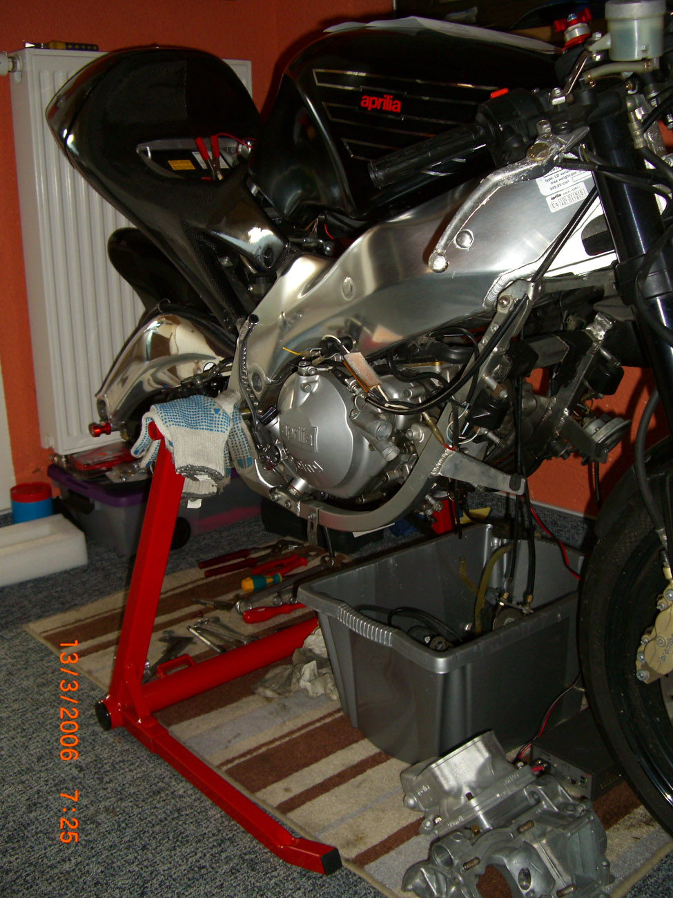 ....nach nun ca. 10-Monaten, hier ein nervenaufreibendes Update in Bild. Der Anwalt ist machtlos. Die Versicherung bleibt stumm und ich hangel mich von einer Pleite zur anderen.....will bedeuten, dass hier nix mehr geht. Zum einen fehlt es an Teilen die passen sollten, andere Teile sind nicht mehr am seriösen Markt erhältlich....das was ich bis jetzt an finanziellen Mitteln versenkt habe, sieht man am Moped nicht.....alles Kleinteile. Wenn ich viel Glück habe, so kommt die neue Verkleidung evtl. heute o. kommende Woche.....ein Glück, dass ich noch anderes zu tun haben
