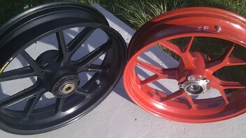 Ist die rechte Felge im Bild. Links dazu im Vergleich die marchesini Felge. Optisch sind die beiden kaum zu unterscheiden. Kann also auch als Ersatz für eine marchesini herhalten.