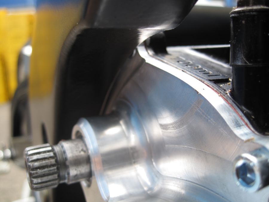 Anbei noch ein paar Detailbilder der Motoraufnahmen und wie der Motor im Rahmen sitzt. Wie man sehen kann ist alles wahnsinnig eng und knapp, der Motor passt gerade so in den Rahmen rein: