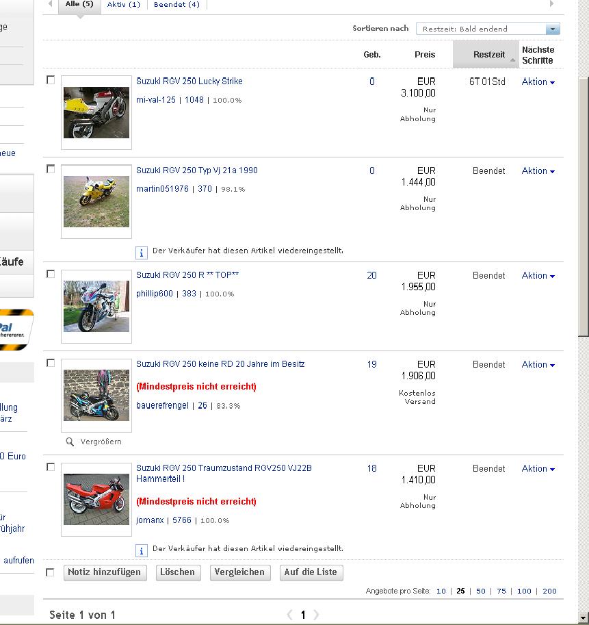 Nur interessiert der damalige Neupreis absolut GAR NICHT. Wer heutzutage eine RGV in einem kratzerfreien Zustand möchte, die wenig Kilometer auf der Uhr hat muß einfach tiefer in die Tasche greifen. Um das Mopped soweit wieder fit zu machen, denke sollten für Motor, Verschleißteile, Reifen etc. an die 700 Euro investiert werden.