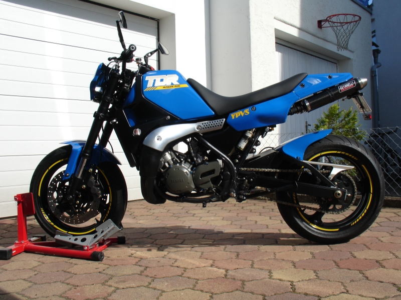 Modifikationen: YZF 750 USD Gabel samt Felge und Bremsscheiben, 3vx Bananenschwinge samt Felge und Bremsscheibe. Spiegler Lenker, Stahlflex usw..