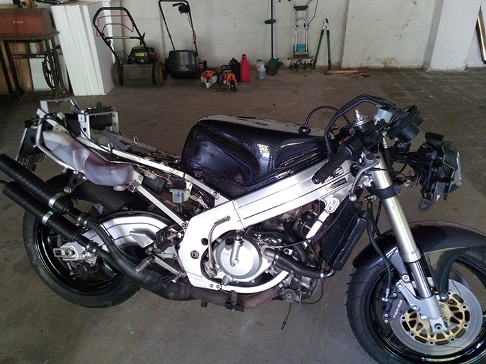 Die Radläufe aus Carbon sind drauf, der Auspuff aus Carbon ebenfalls,