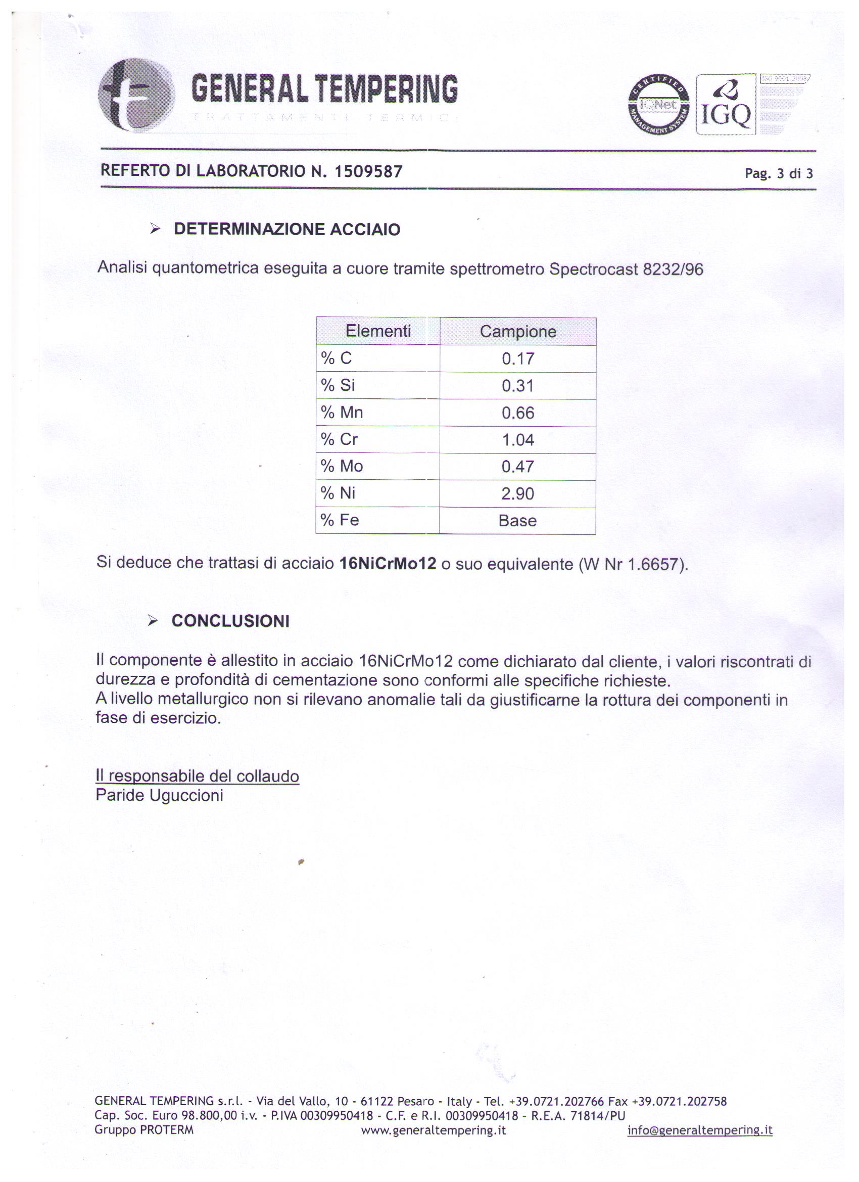 ich habe von Claudio ein paar Berichte bekommen. Mein gebrochenes Zahnrad wurde untersucht. Leider spreche ich überhaupt kein italienisch, deswegen kann ich nur die Tabellen deuten. Aus meiner Sicht würde ich folgendes zusammen fassen: