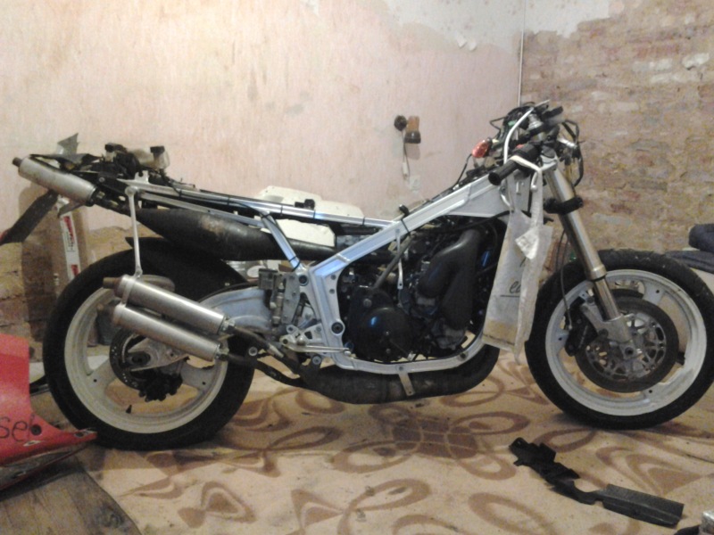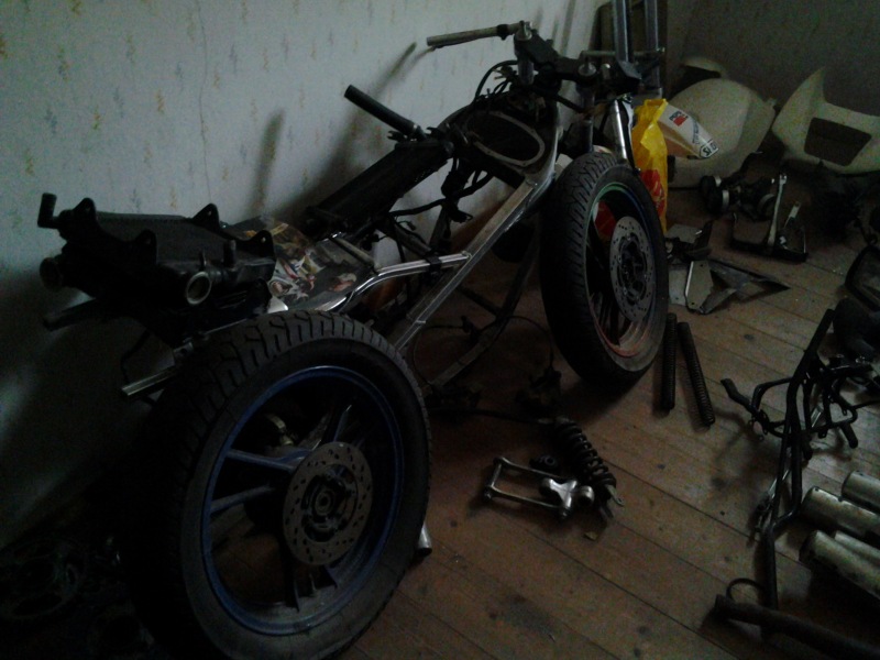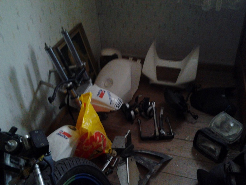 Ich kam zu Verkäufer der RGV Teile, altes unbewohntes Bauerhaus (Bauerhof) in Baden-Würtemberg da staunte ich nicht schlecht im EG steht eine RG 500 und im 1.OG die andere in Teilen und viele zusätzliche Teile 3x Jollys und Motorenteile usw... also im ersten moment war ich geschockt, das alles steht schon seit 15 Jahren da.