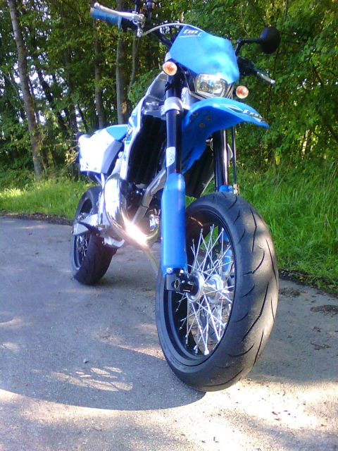 Beschreibung: Starke 125 ccm 2 Takt Supermoto mit Straßen Zulassung . bei etwas Technischem Verständnis auch im Alltag einsetzbar .