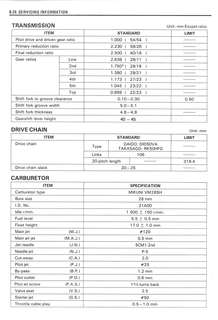 Hier noch die RG500Gamma Miikuni TM28SH Standardbestückung: