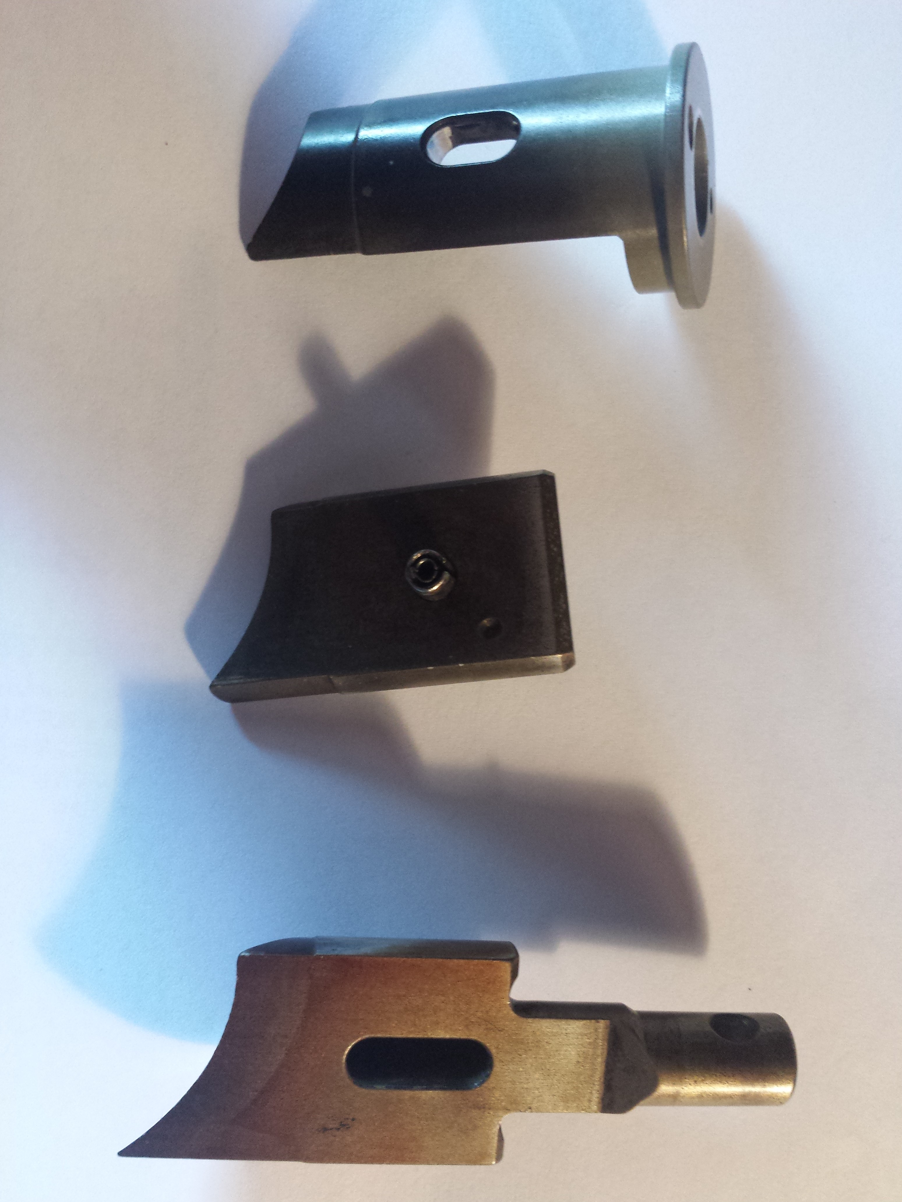 Ist der Schieber im Bild 1-3 noch in Ordnung? Nicht das diese Verfärbung mal die Beschichtung des Schiebers war und diese sich mittlerweile ablöst? Handelt es sich um einen verstärkten Schieber wegen des doppelten Spannstiftes?