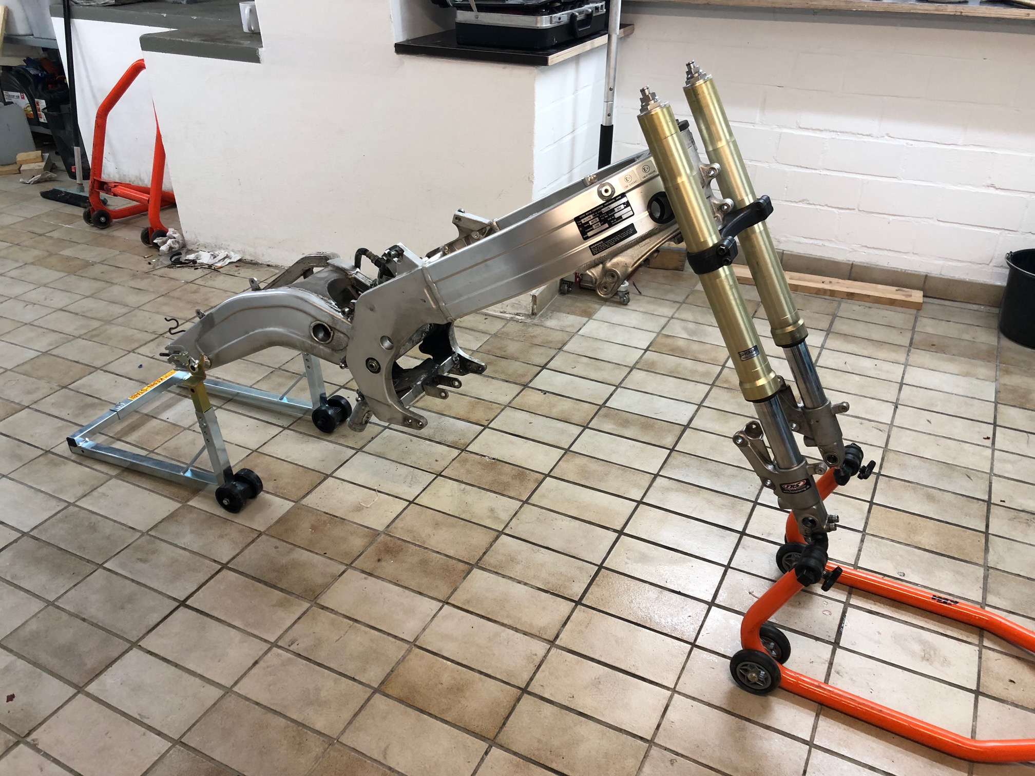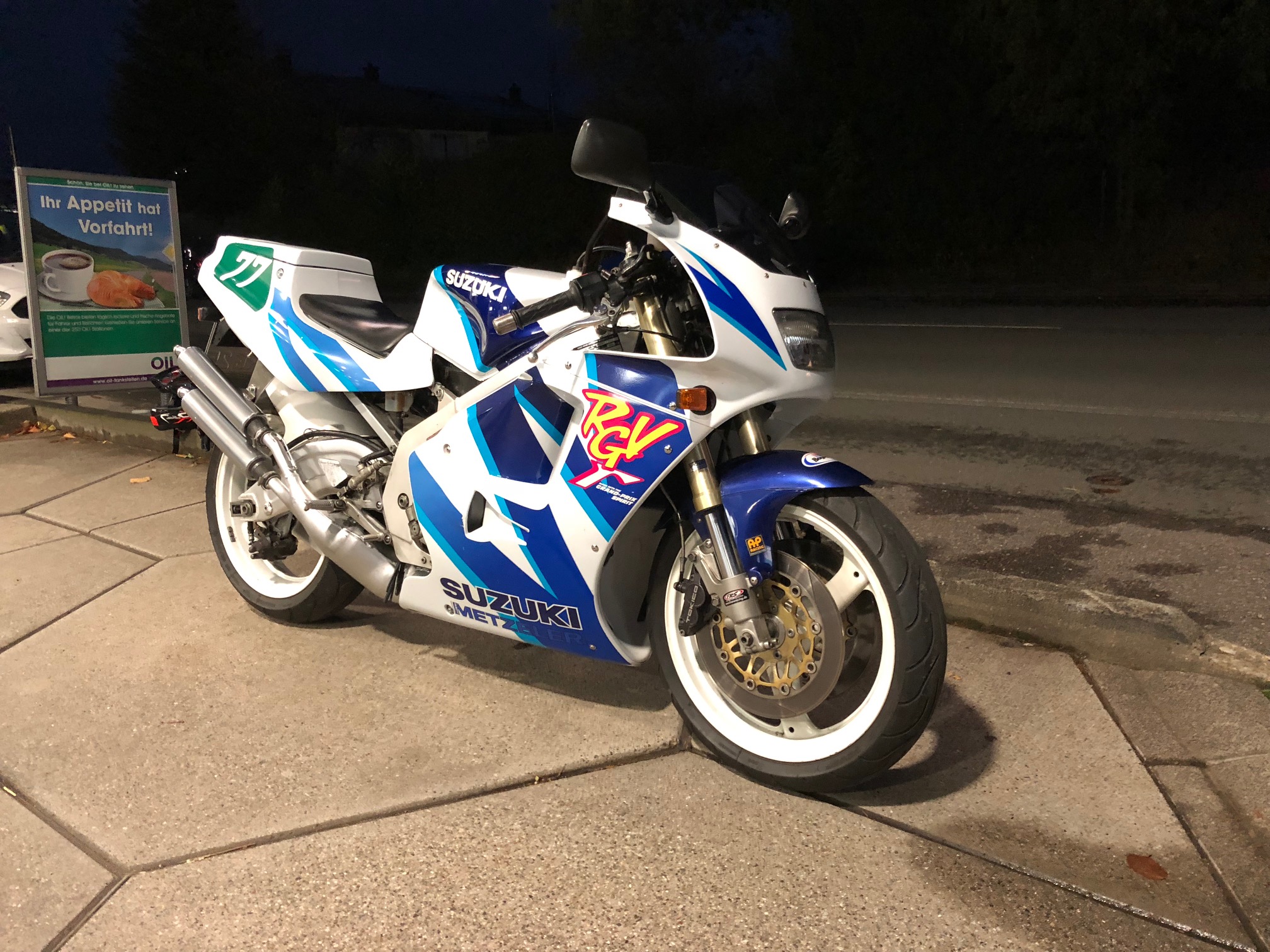 Nach dem Kauf und ein paar erfolgreichen Funktionstestfahrten, erst mit originalem Auspuff und dann mit der JollyMoto, kam die RGV nach 200km in die Garage.