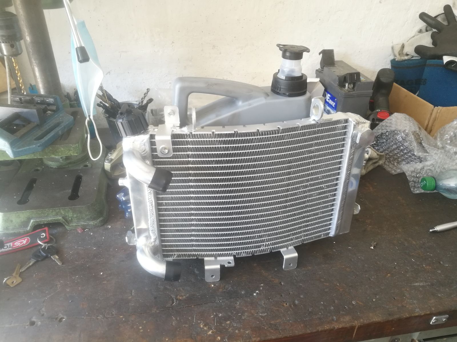 Ich bin seit Anbeginn dieses Projektes immer auf der Suche nach einem beschichteten Zylinder den ich in irgendeiner Weise auf den Block bekomme. Natürlich sind gewisse Parameter wie Zylinderabstand, Hub, Höhe, Wasserführung und die Breite der Überströmertaschen entscheident. Hab mich dann für was eigentlich abwägiges entschieden. Und zwar ein Tz 250 Block von 1978, Schlitzgesteuert ohne alles. Das ganze erfordert natürlich einiges an Schweiß und Fräsarbeit. Das schließt den Umbau auf Membraneinlass und PV Steuerung mit ein. Zusätzlich kommen Nebenauslässe und eine 5k Spülung rein.