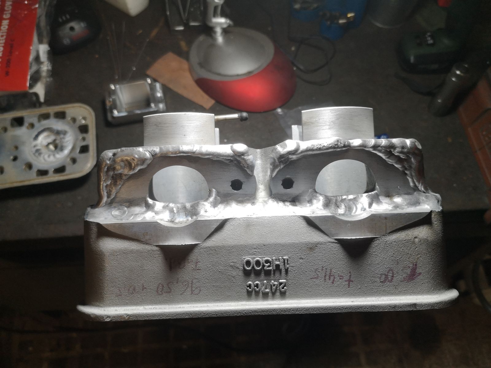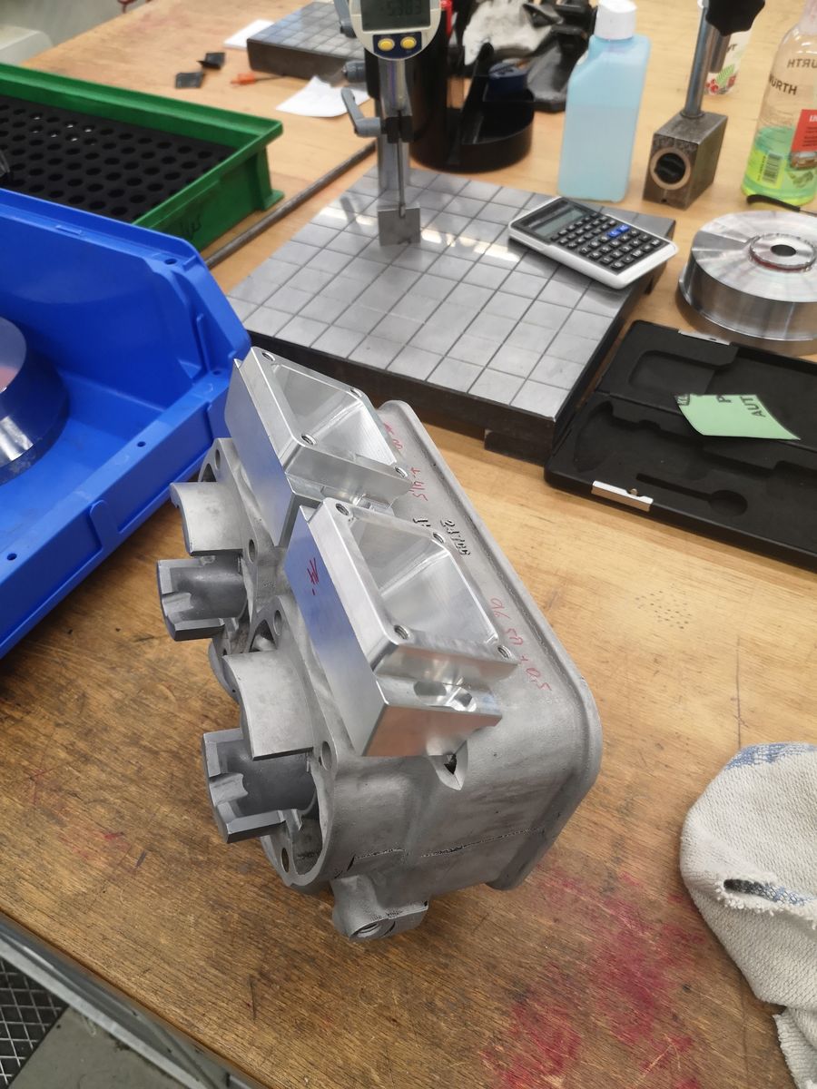 Ich bin seit Anbeginn dieses Projektes immer auf der Suche nach einem beschichteten Zylinder den ich in irgendeiner Weise auf den Block bekomme. Natürlich sind gewisse Parameter wie Zylinderabstand, Hub, Höhe, Wasserführung und die Breite der Überströmertaschen entscheident. Hab mich dann für was eigentlich abwägiges entschieden. Und zwar ein Tz 250 Block von 1978, Schlitzgesteuert ohne alles. Das ganze erfordert natürlich einiges an Schweiß und Fräsarbeit. Das schließt den Umbau auf Membraneinlass und PV Steuerung mit ein. Zusätzlich kommen Nebenauslässe und eine 5k Spülung rein.
