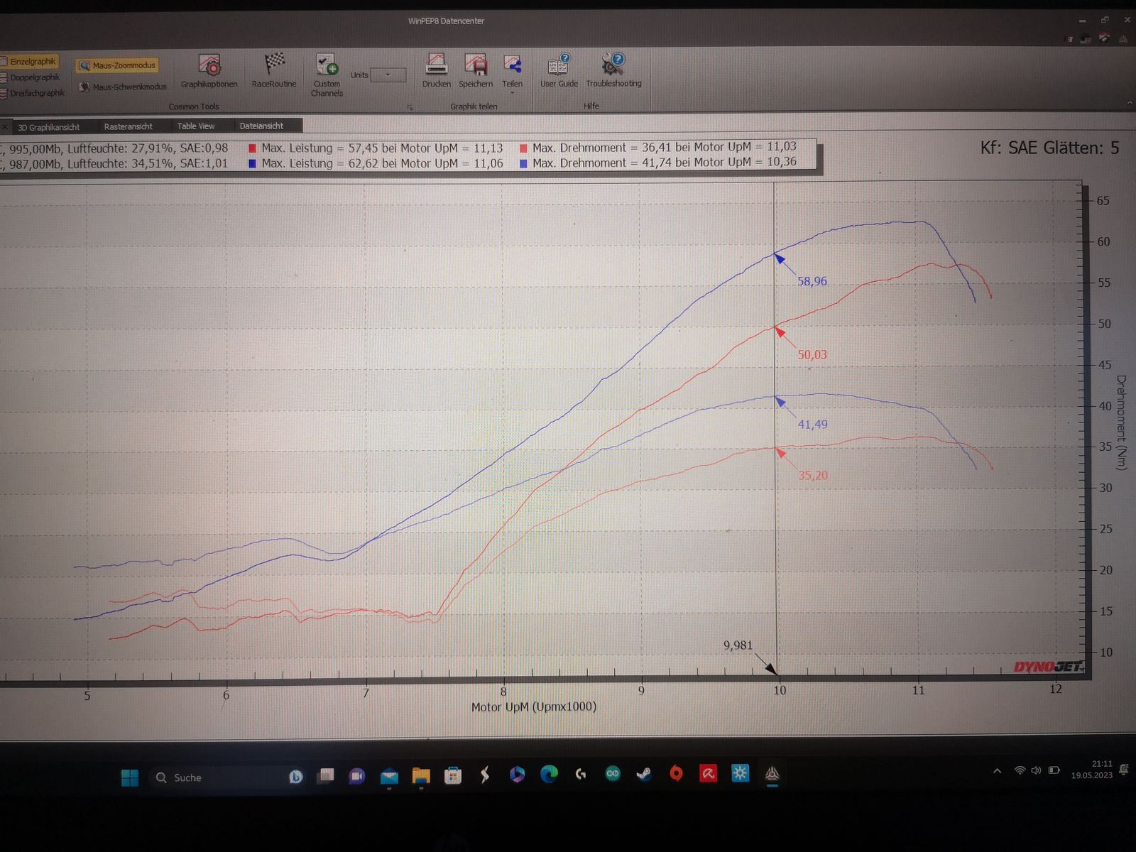 Ja richtig, deutlich reduzierte Spülverluste. Es ist sogar so das sich die afr Kurve ebenfalls verändert hat. Diese ist nun ab 8000 umdr. fast immer konstant bei 12,0 +/- 0,5 gewesen. Dies ist natürlich noch zu fett, besser wäre 12,8-13,0 Also hier auch wieder was gelernt. Man kann an der AFR Kurve ablesen wie gut ein Zylinder spült.