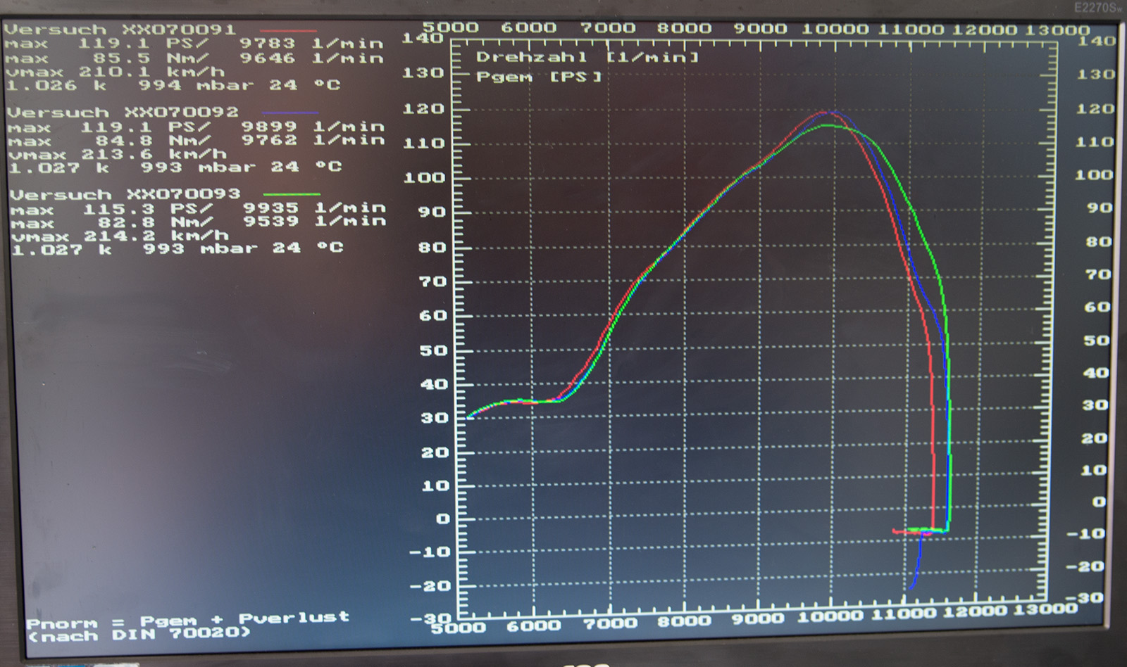 Die neue Auspuffversion konnten wir noch nicht testen weil eben die KW-Füllung sich gelöst hat. Die Leistung sollte jetzt etwas nach oben verschoben werden.