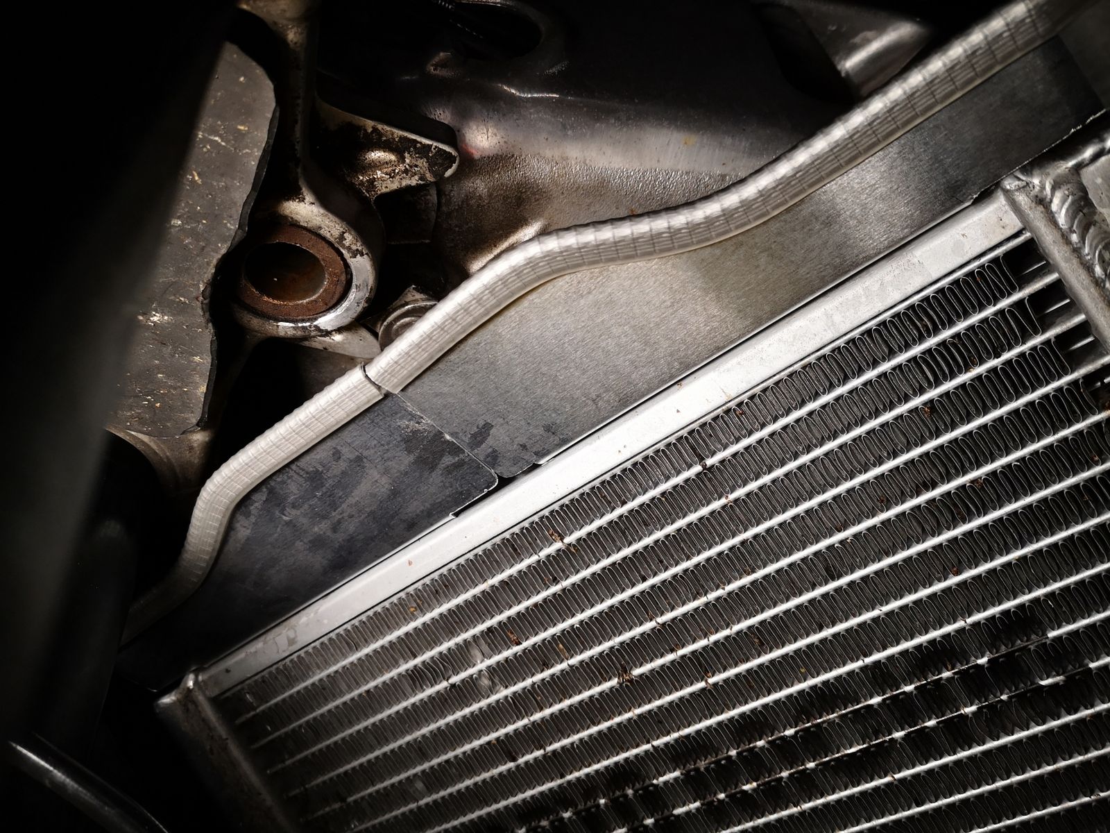 • Da der größte Kühler ohne richtige Anströmung nicht perfekt funktioniert, hab ich noch für oben Leitbleche gebastelt. Passten eben bei der Anprobe perfekt.
