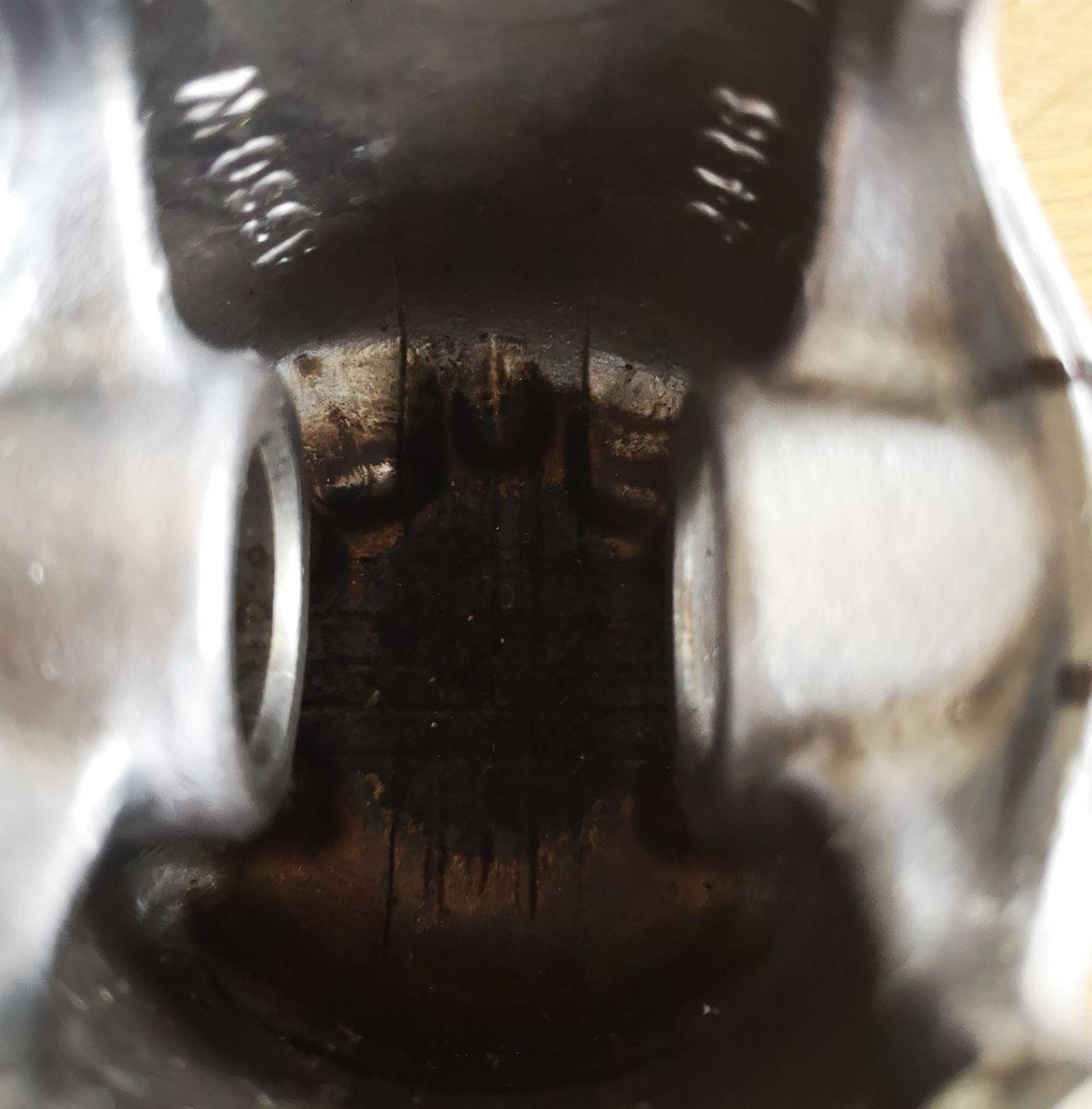 Man erkennt auch eine Verfärbung vom Nadellager etwas aussermittig zu der Seite wo der Riss angefangen hat.