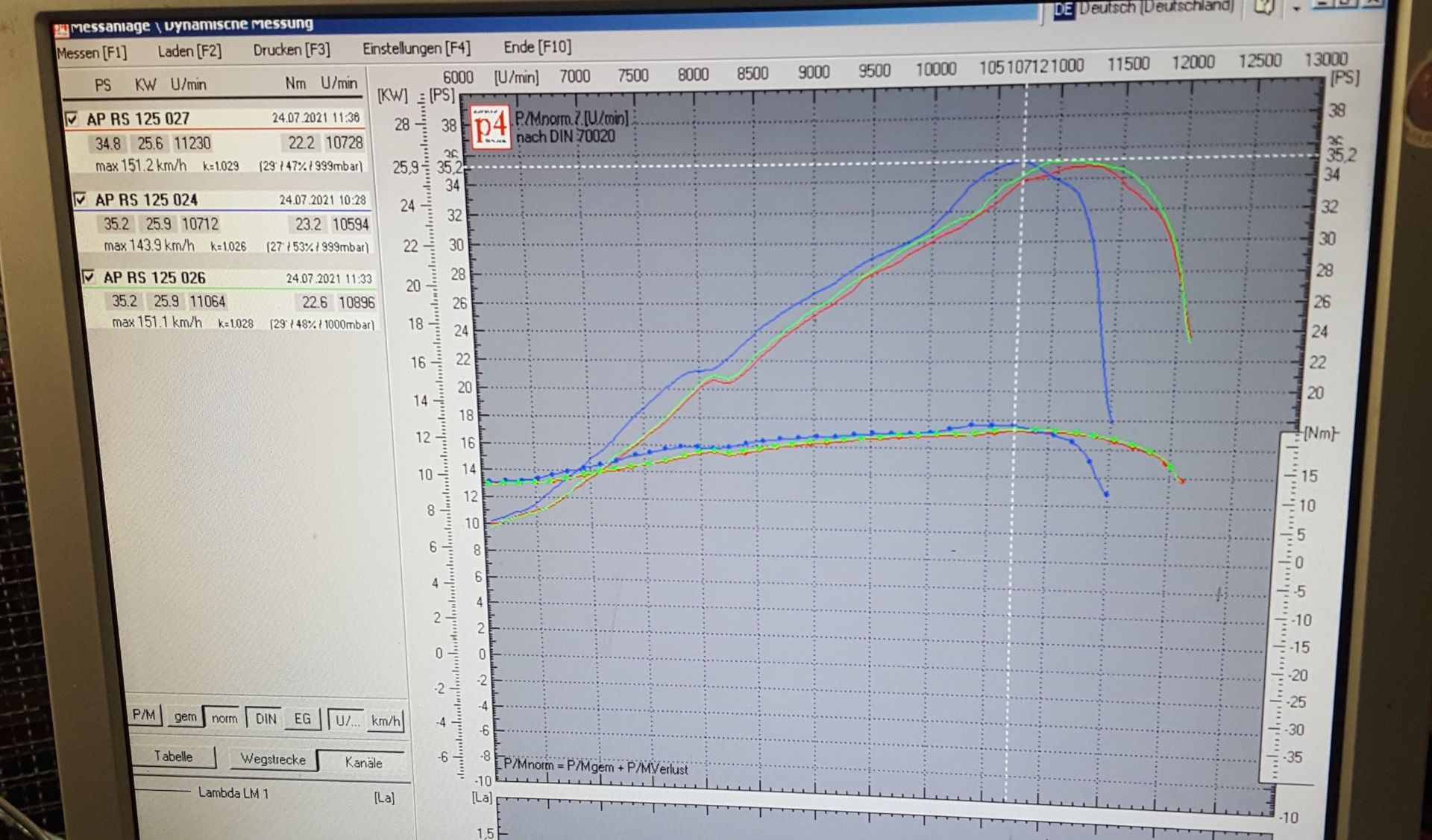 Ebenfalls 35ps....aber ca. 400Umin höher. Und über das Band fehlen 1-2PS.
