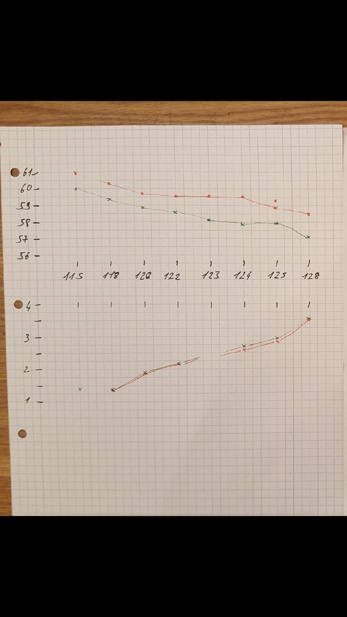 Aber ich weiss dass bei mir bis jetzt 650Grad bei 11-12000Umin gehalten haben, und mit dem bearbeiteten Zylinder wo es mit HD 122 und 670-680Grad anfing das Material kaputt zu gehen....was aber vielleicht auch nur Zufall war.