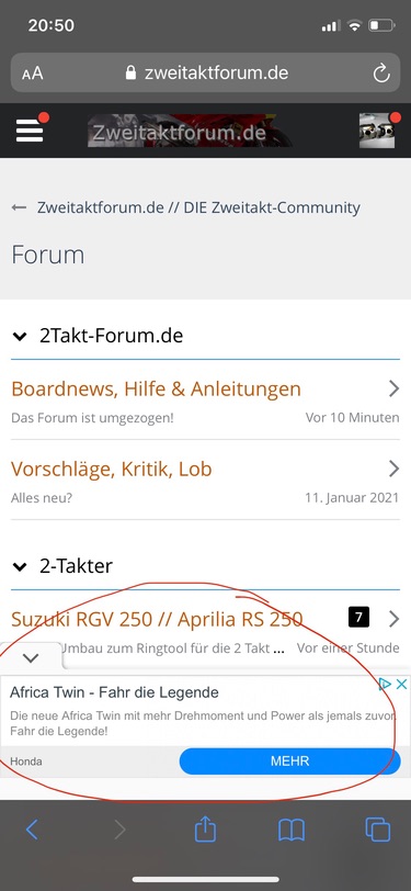 Ist diese Werbung neu, die mich willkürlich auffordert eine Africa Twin zu kaufen indem mein ganzes Telefon davon ausgefüllt wird? =O