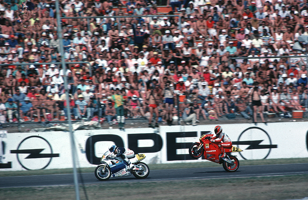 Randy in jeder Runde mit Wheelie die Start-Ziel gerade lang !