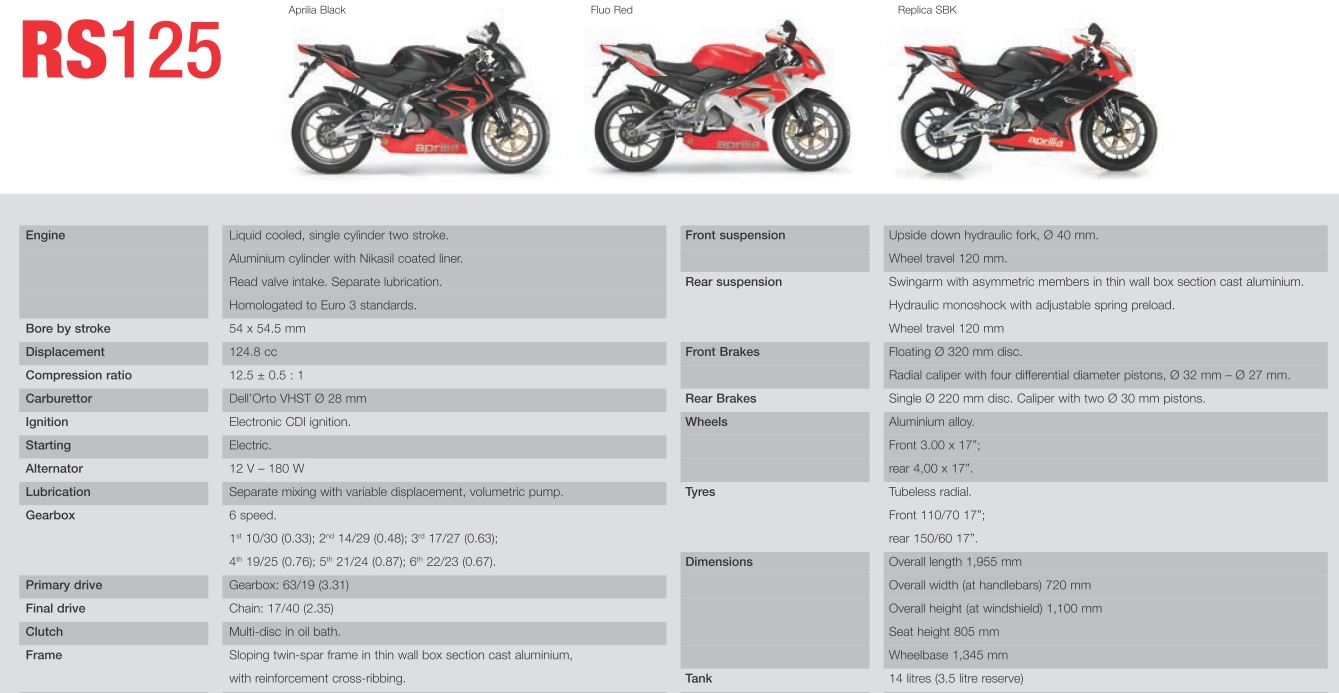 Wo ich grad schon am motzen über "fehlerhafte Dokumente" bin: Ich finde die Qualität der Aprilia-eigenen Angaben in den Bedienungsanleitungen/WHB und in den Werbebroschüren hat zum Ende der Bauzeit, also ca. ab RD/RM Modell etwas gelitten.