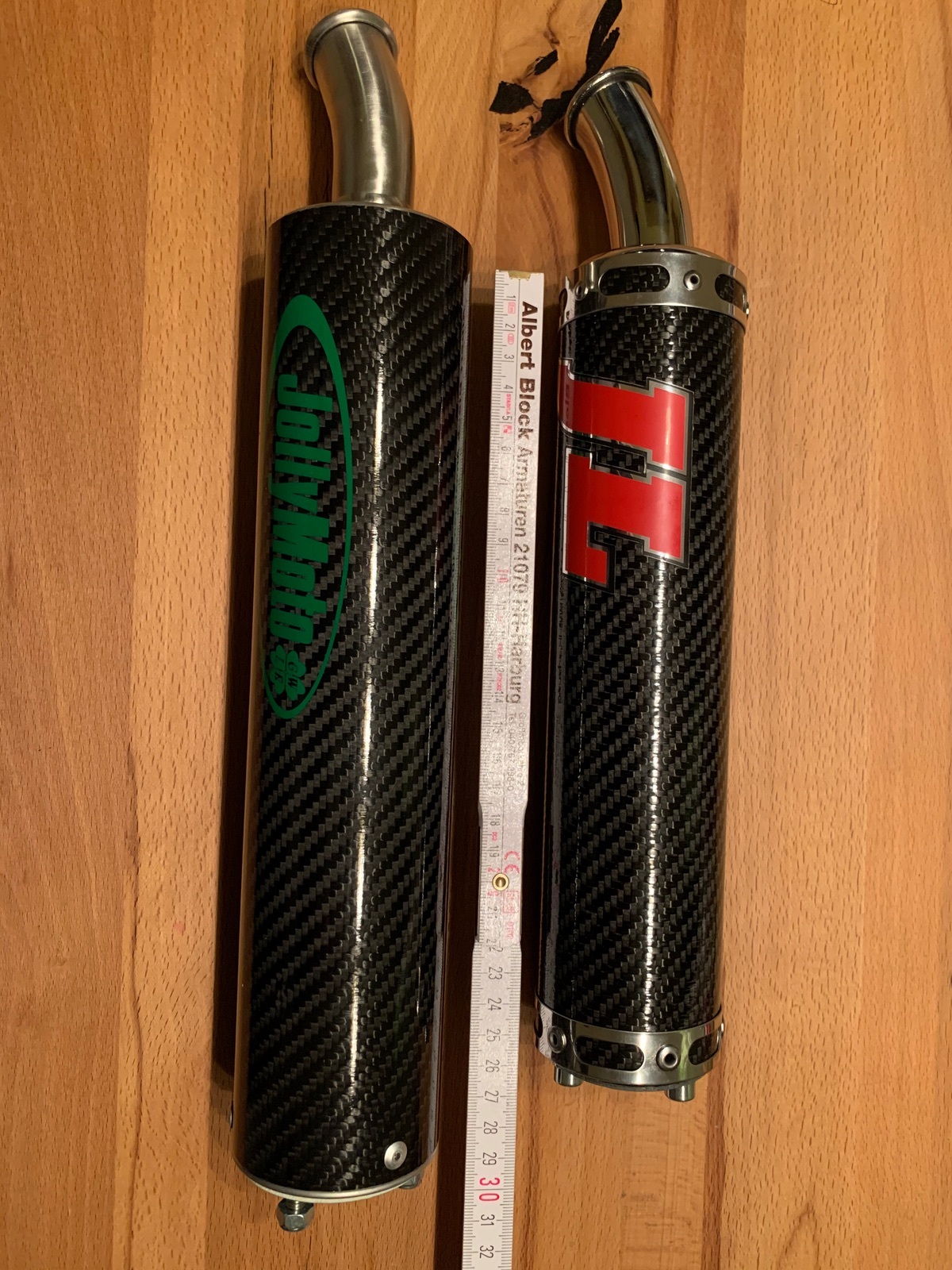 Habe neue Jolly-Dämper für die RG 500 liegen, die haben ein Siebrohr 22 mm und ein gebogenes Endröhrchen von 21 mm.