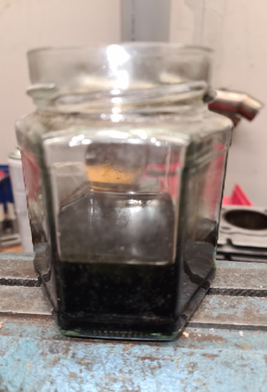 Zur allg. Belustigung aber mal ein kurzes Feedback: Diese Ölmenge tropfte aus beiden Auspuffbirnen und der Schieberkammer des rechten Zylinders.