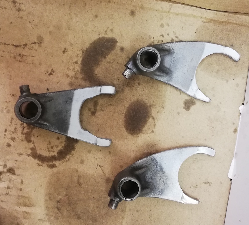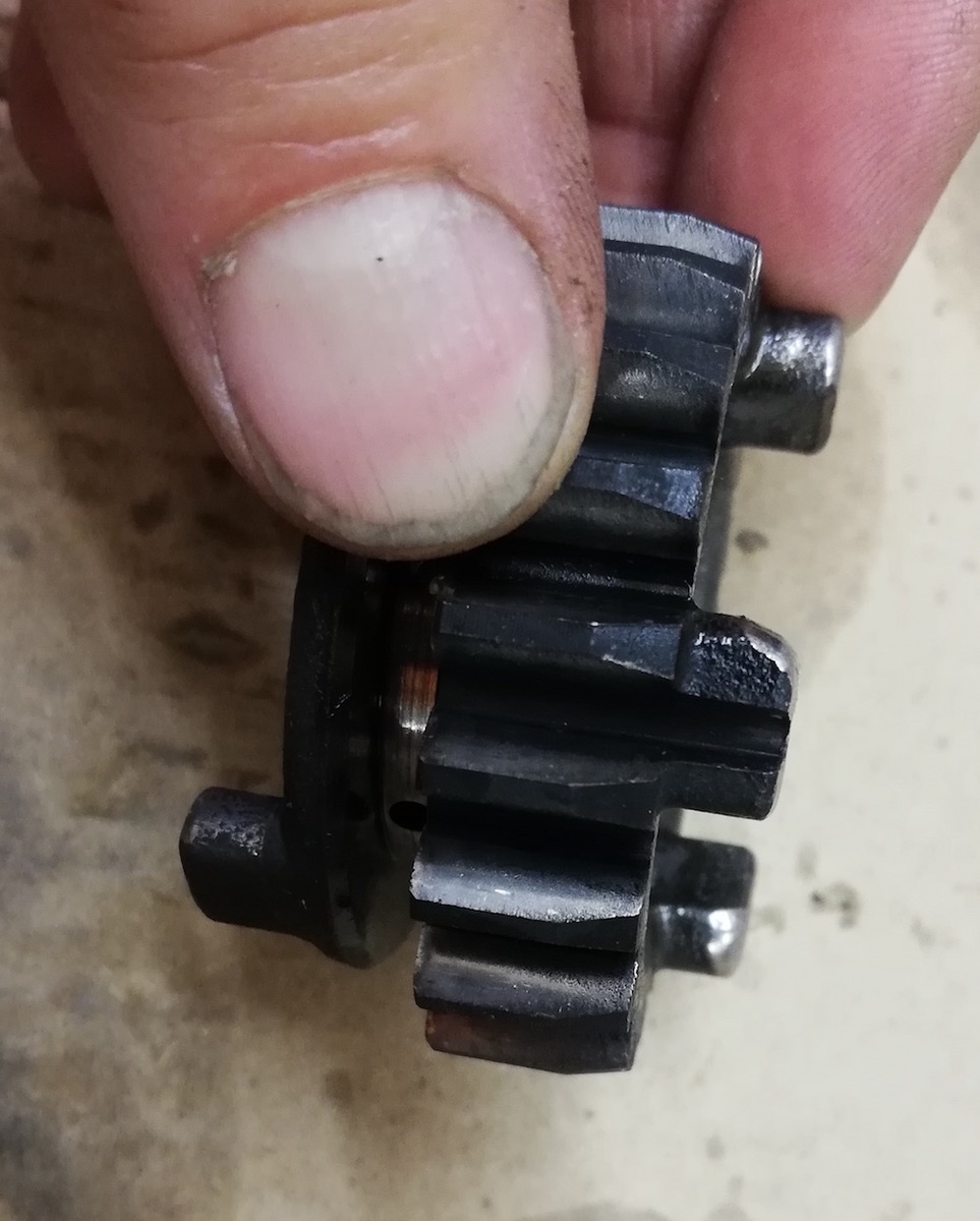 Dadurch das ja meine 1. Getriebeöffnung ist und dementsprechend null Ahnung hab - hab ich mich auf Youtube vorher schlau gemacht. Hab dazu ein Video geschaut wo 2. Gang rausspringt und genau die Dornen von einem Gangritzel (Nr. 18)über eine Schaltgabel in ein anderes Ritzel (Nr.14) geschoben werden und dieses mitnimmt. Diese Dornen sind bei genauso ausgeschlagen (kein 90° Winkel mehr, sondern abgerundet bzw. ein Dorn hat fast einen 45° Winkel. Ebenso sind die Kerben des 2. Gangs (Nr. 14) schon ausgeschlagen - Fotos kommen noch.