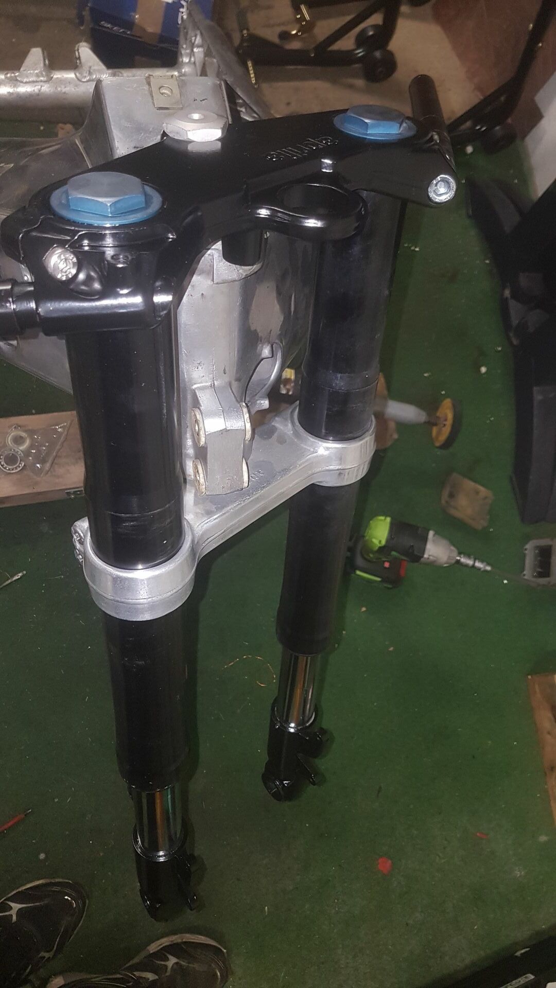 Die obere Gabelbrille erfuhr das gleiche wie die Gabelschuhe.. einmal grundieren