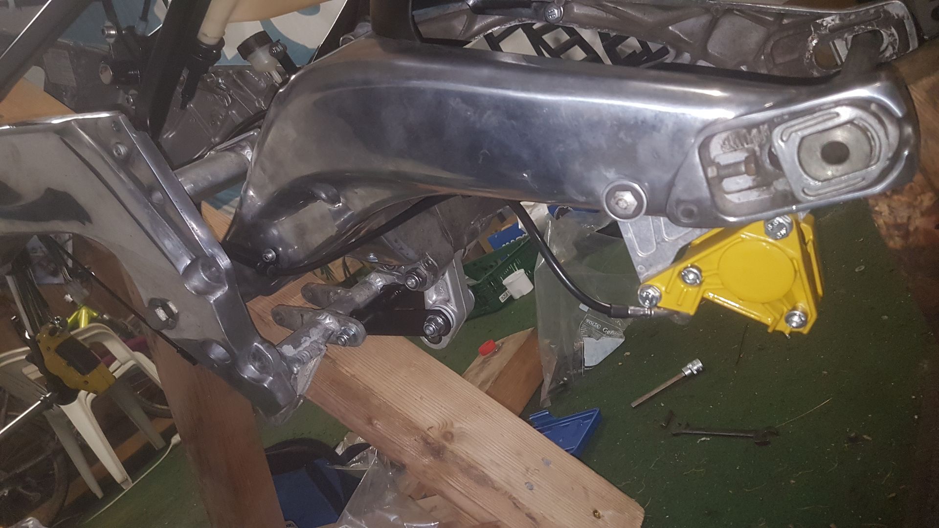 Die Umlenkung ist samt Schwinge verbaut