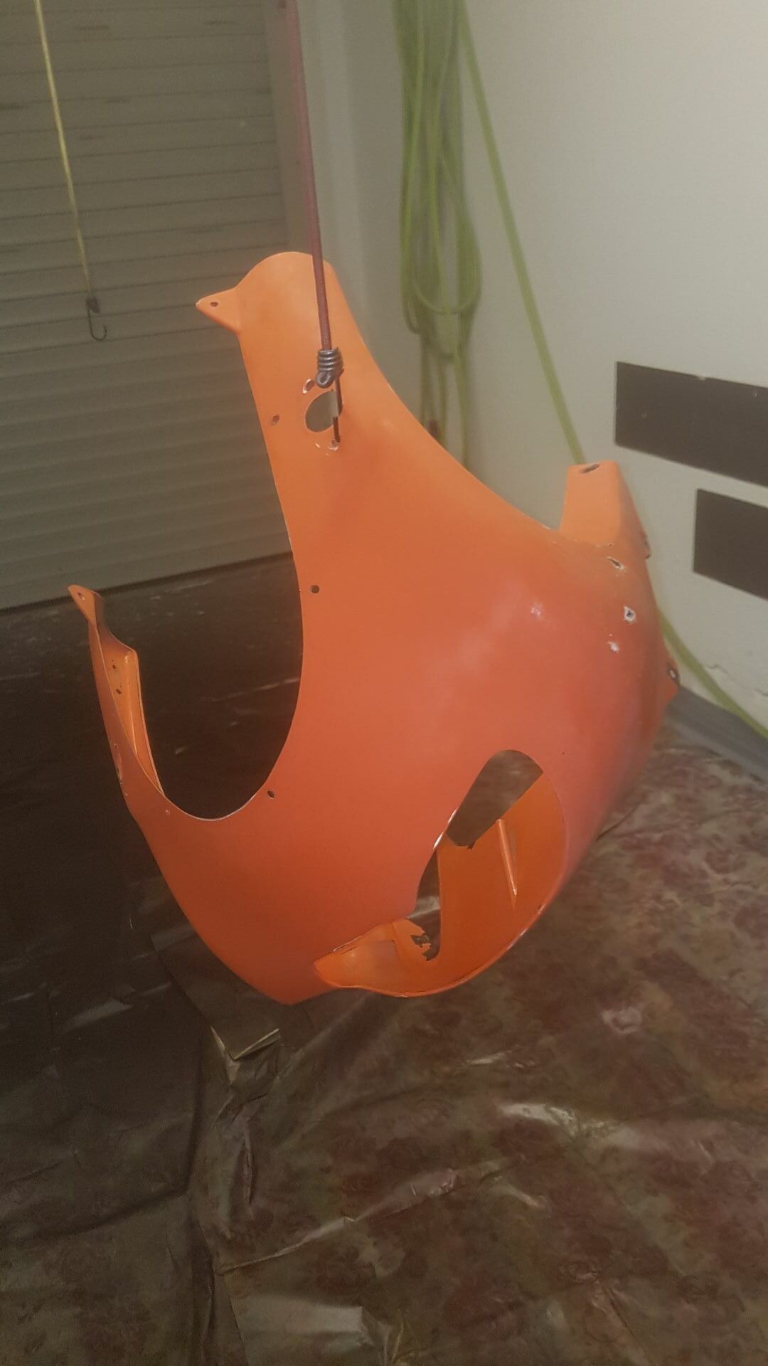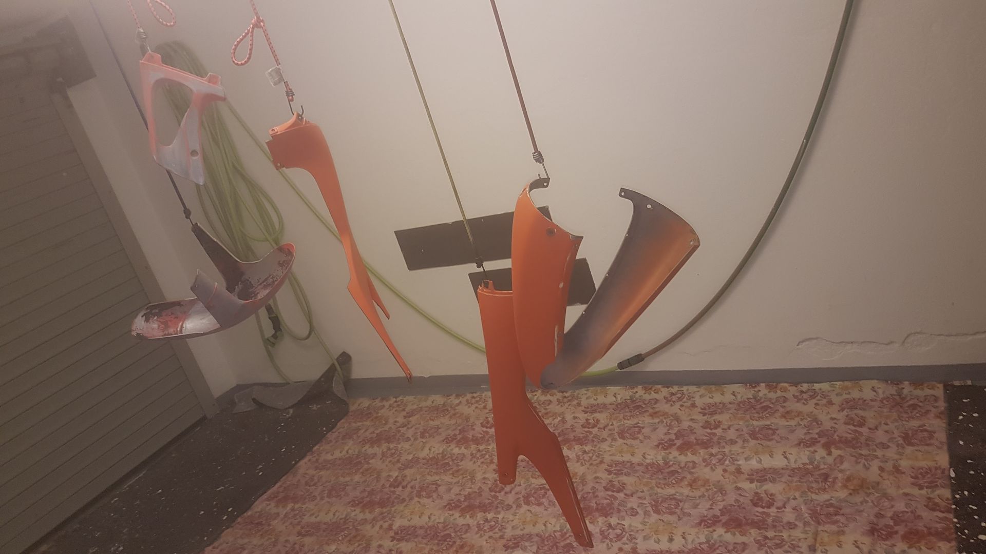 Aber bei dem Schmuddelwetter kann man andere Arbeiten verrichten, die originalen Verkleidungsteile habe ich angeschliffen mit 100-120er Körnung, dann entfettet mit Bremsenreiniger.