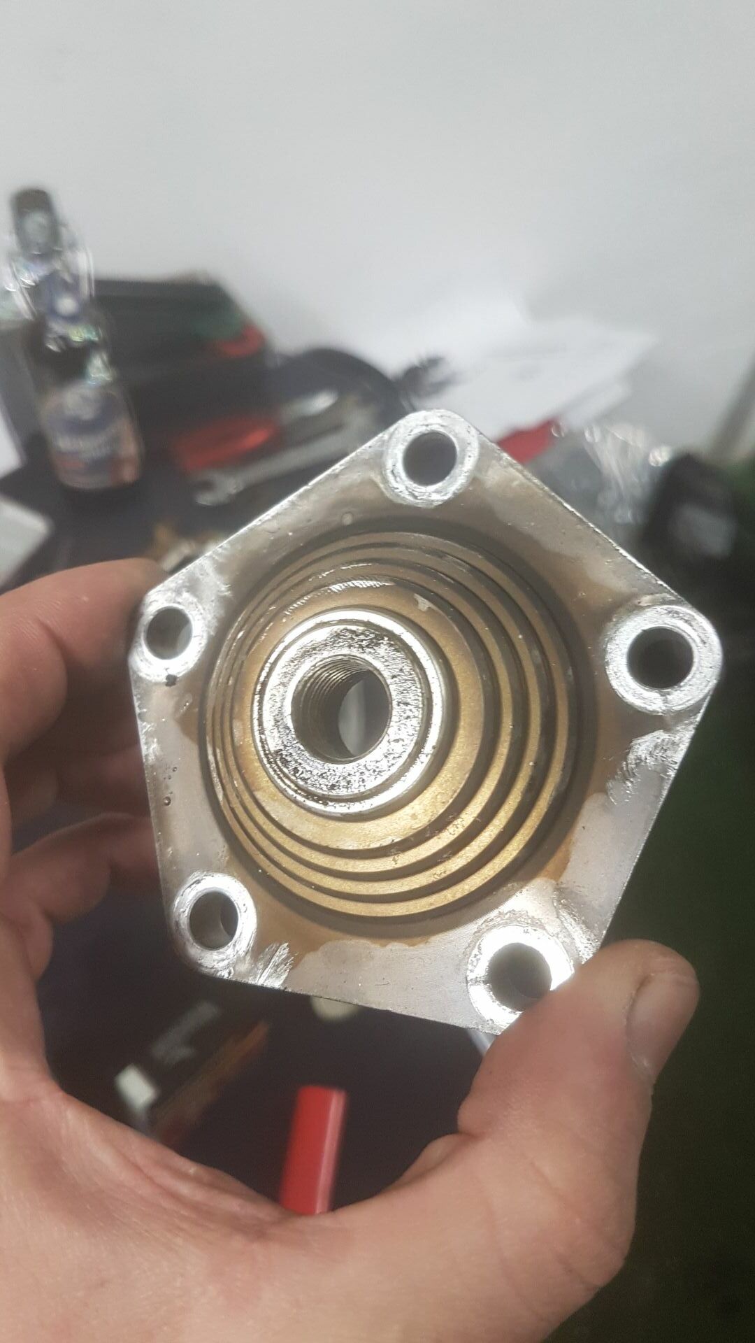 Zylinder Nummer 2 hat zwar auch akzeptable 54.02mm Innendurchmesser (wenn man einen passenden Kolben nach dem Honen reinsteckt) , ist aber unter dem Einlass schon auf 54.05mm abgenagt, hat aber noch die originale Beschichtung. Also werde ich nach jetzigem Stand den zum neu beschichten geben.
