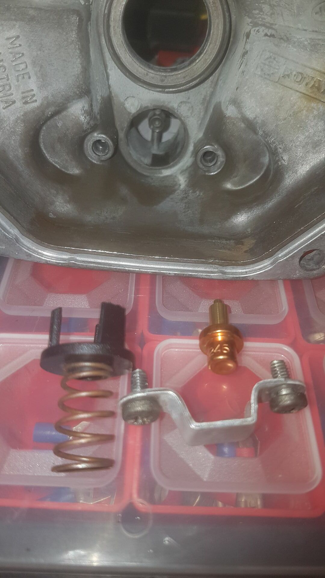 So habe ich die Wasserhaube gereinigt und ein neues Thermostat verbaut, welches bei 45°C öffnen soll. In den 2 Motoren fehlte entweder alles oder das Thermostatventil war angebohrt ohne das das Thermostat selbst verbaut war.