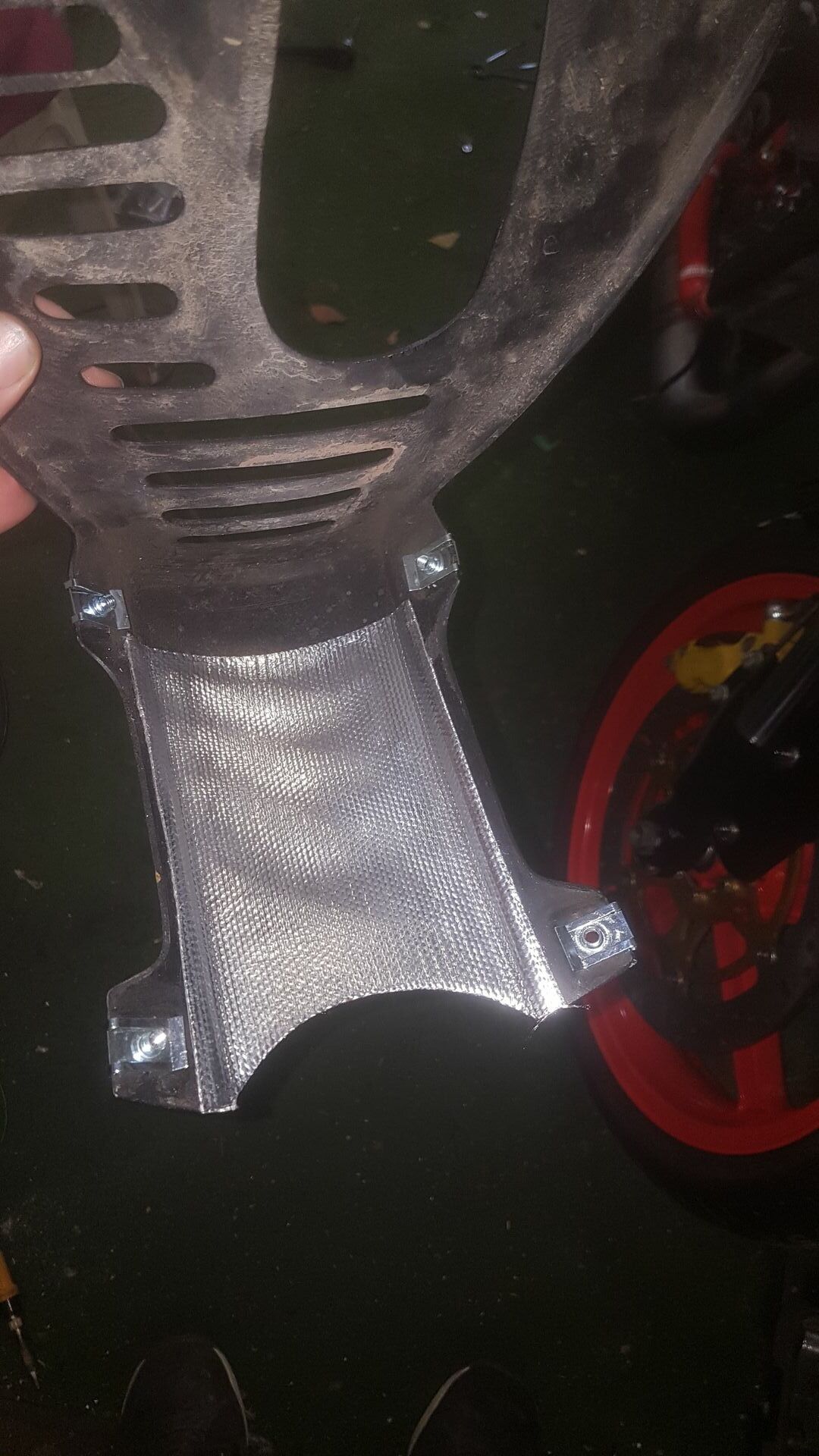 die Verkleidung hat in Auspuffnähe selbstklebende Hitzeschutzfolie bekommen
