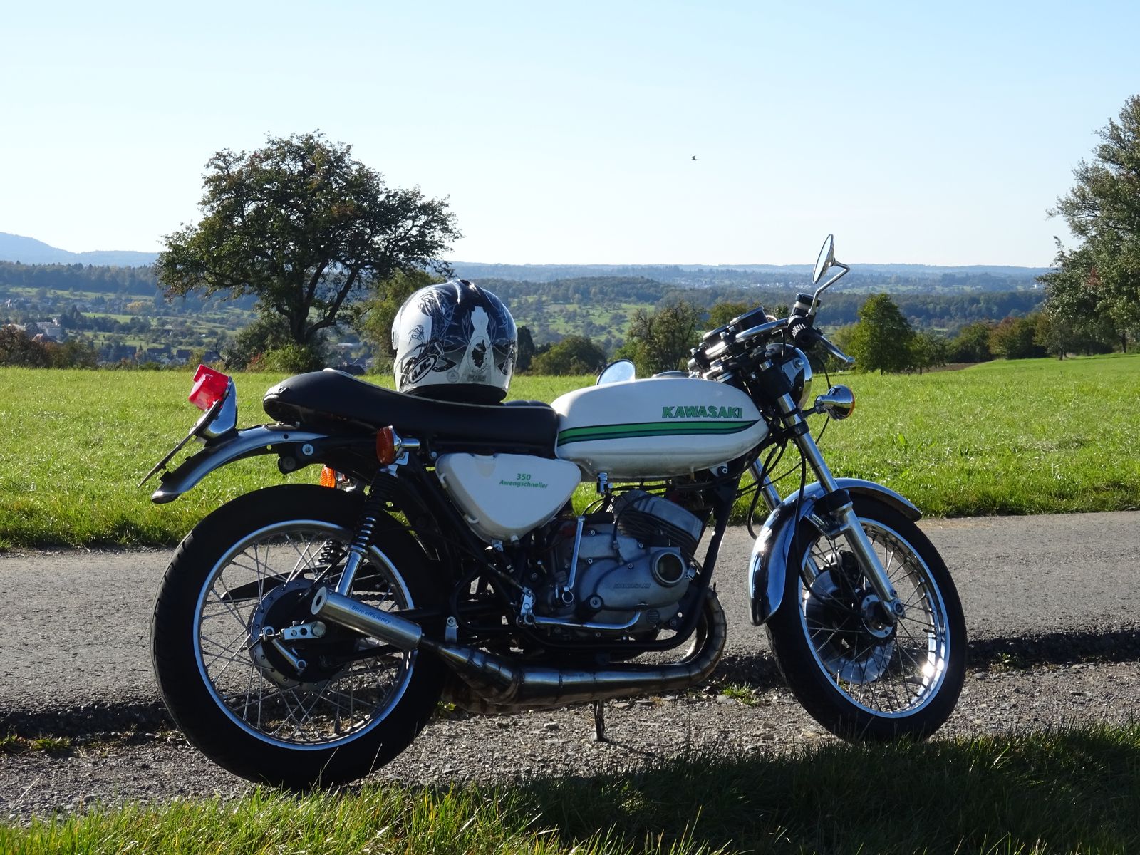 noch die Kupplung - dann läuft die wie geplant - die Dinger sind selten , wenig bekannt und nicht gut beschaffbar -- Ersatzteile sind rar und die Schrauberei im Gegensatz zu den Dreizylindern ein Horror -ausserdem finden sich nur Wenige , die da mit Tipps weiterhelfen können .Die A7 ist eigentlich eine aufgebohrte 250 (320 ccm ) wiegt unter 150 Kg und hat original schon 41PS gehabt -- erstaunlich für die Mopeds aus den End- 60`zigern . War damals auch im Rennsport immer vorne dabei . Meine hier hat den Vorderbau der S3 400 und deren Schwinge -- Auspuff ist ein Eigenbau aus Edelstahl von Yogi - läuft super - klingt im original auch noch besser - besonders im oberen Drehzahlbereich .