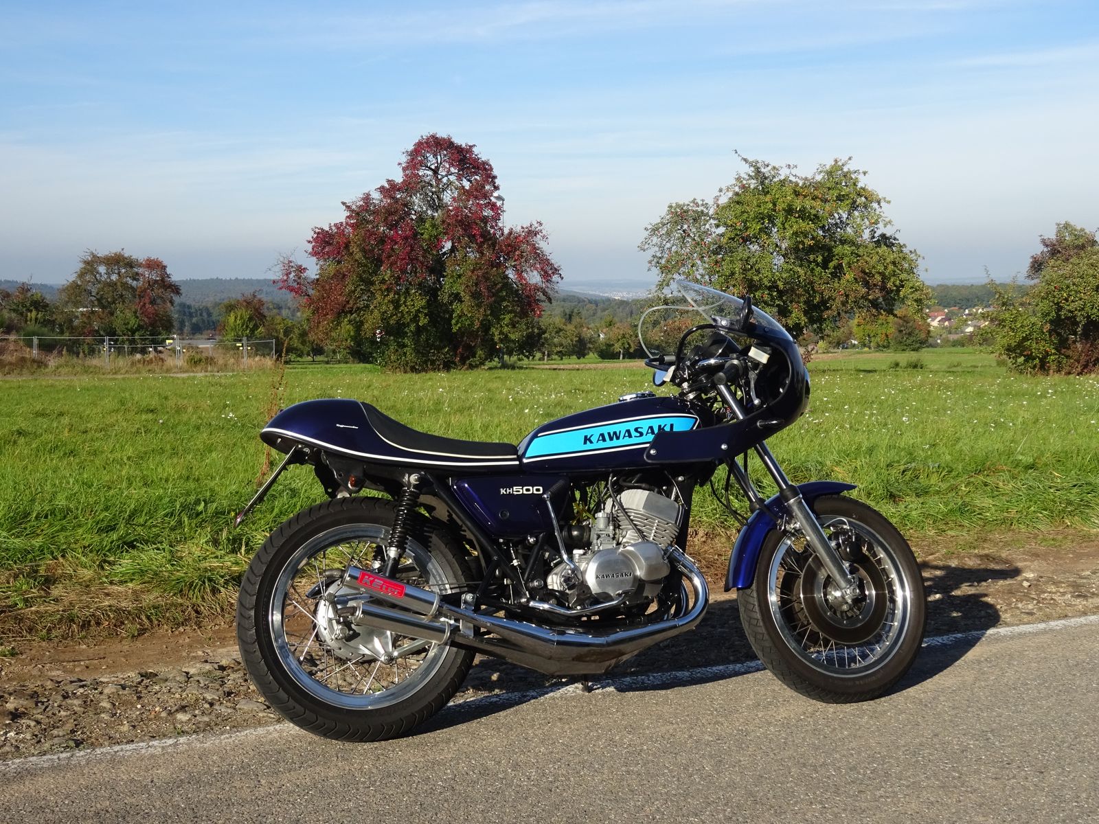 À propos KH 500 -- die Dinger sind schon mit einem erheblichen Abhängigkeitspotential ausgestattet -- Das Wetter war heute derart schön , dass ich nochmal 50 Km um`s Haus gefahren bin . Die K2-tec ist dabei nicht zu laut und der Motor läuft mit den beschichteten Zylindern fast ohne mechanische Geräusche . Zu Deinen Felgen habe ich noch eine Frage -- sind das Akronts? . Habe meine mit viel Überzeugungsarbeit eingetragen bekommen