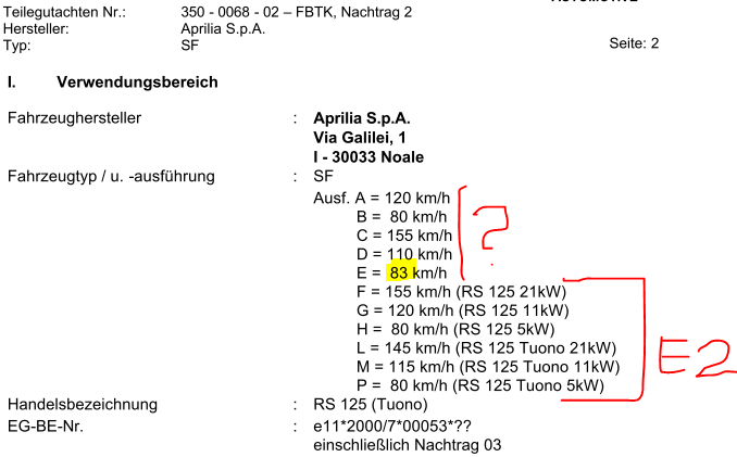 Ich kenn auch noch drei weitere RS, die mit 165 Km/h eingetragen sind, allerdings mit 23kW.