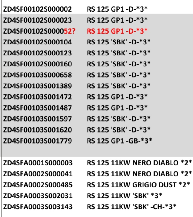 Ein paar Neuigkeiten (zumindest für mich) zur Umstellung von MPB auf SF. Wenn man ein paar Fahrgestellnummern in die Piaggio Rückrufseite eintippt bekommt man folgende Ergebnisse: