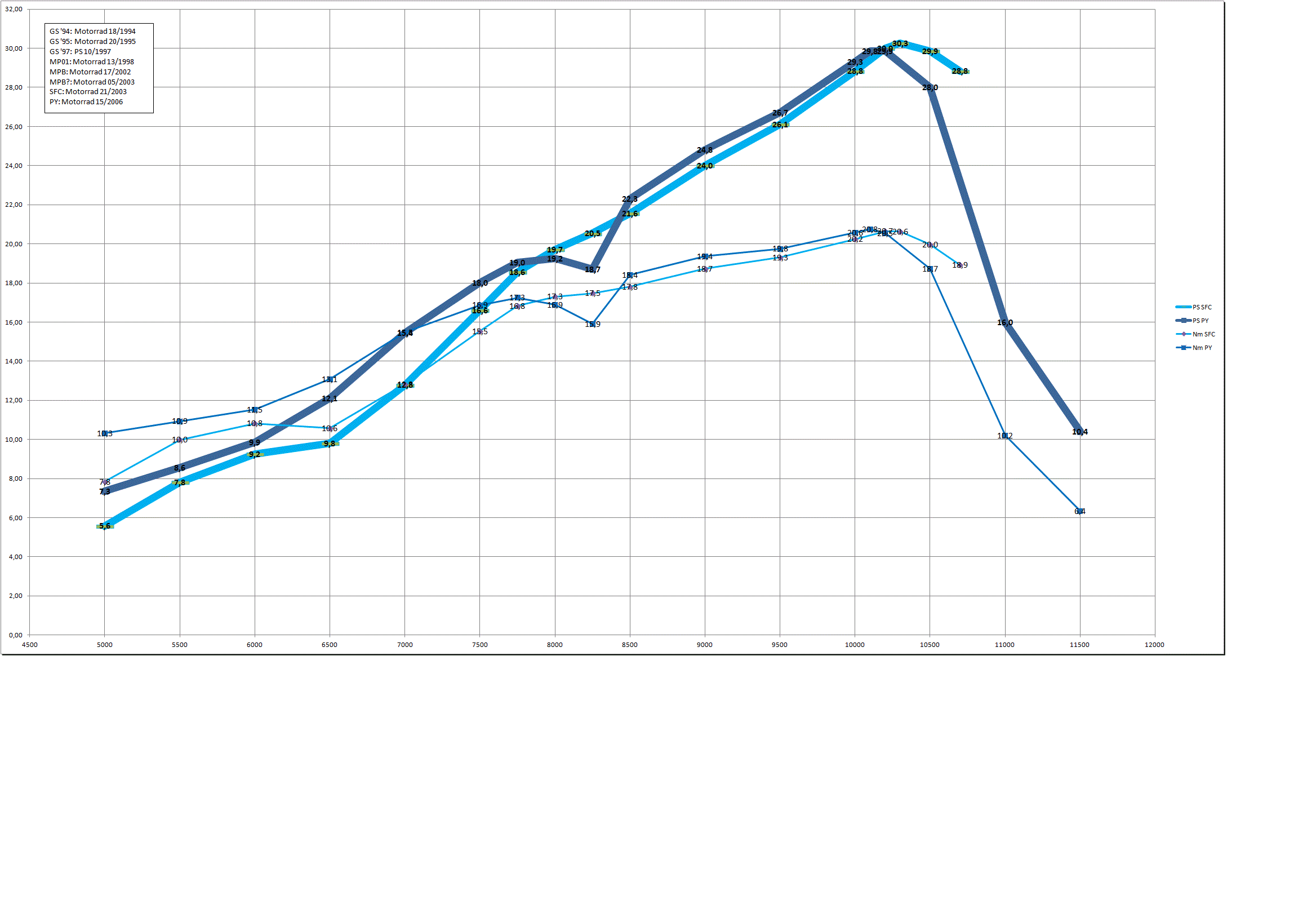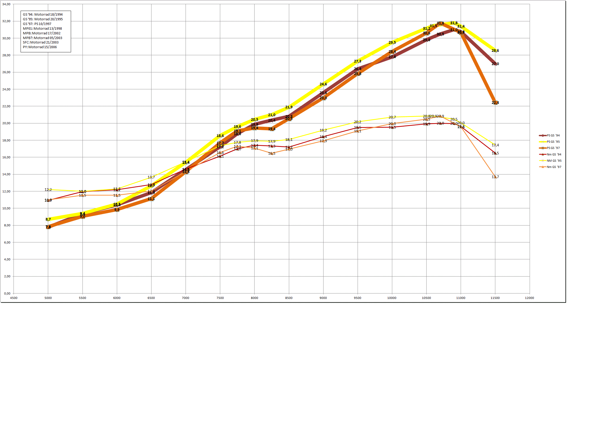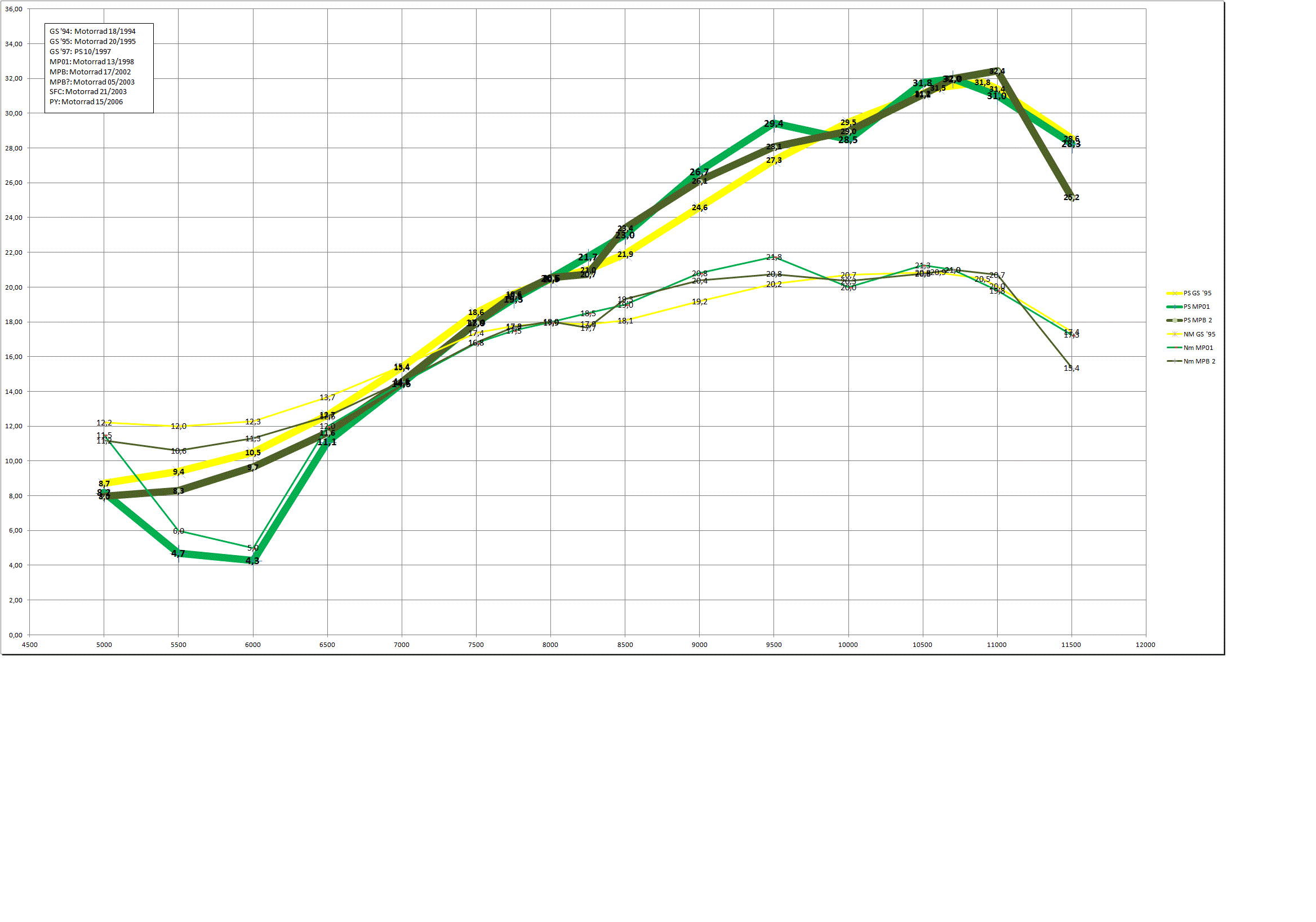 Hier mal Drehmoment und Leistung von einer GS und einer PY in einem Diagramm gegenübergestellt.