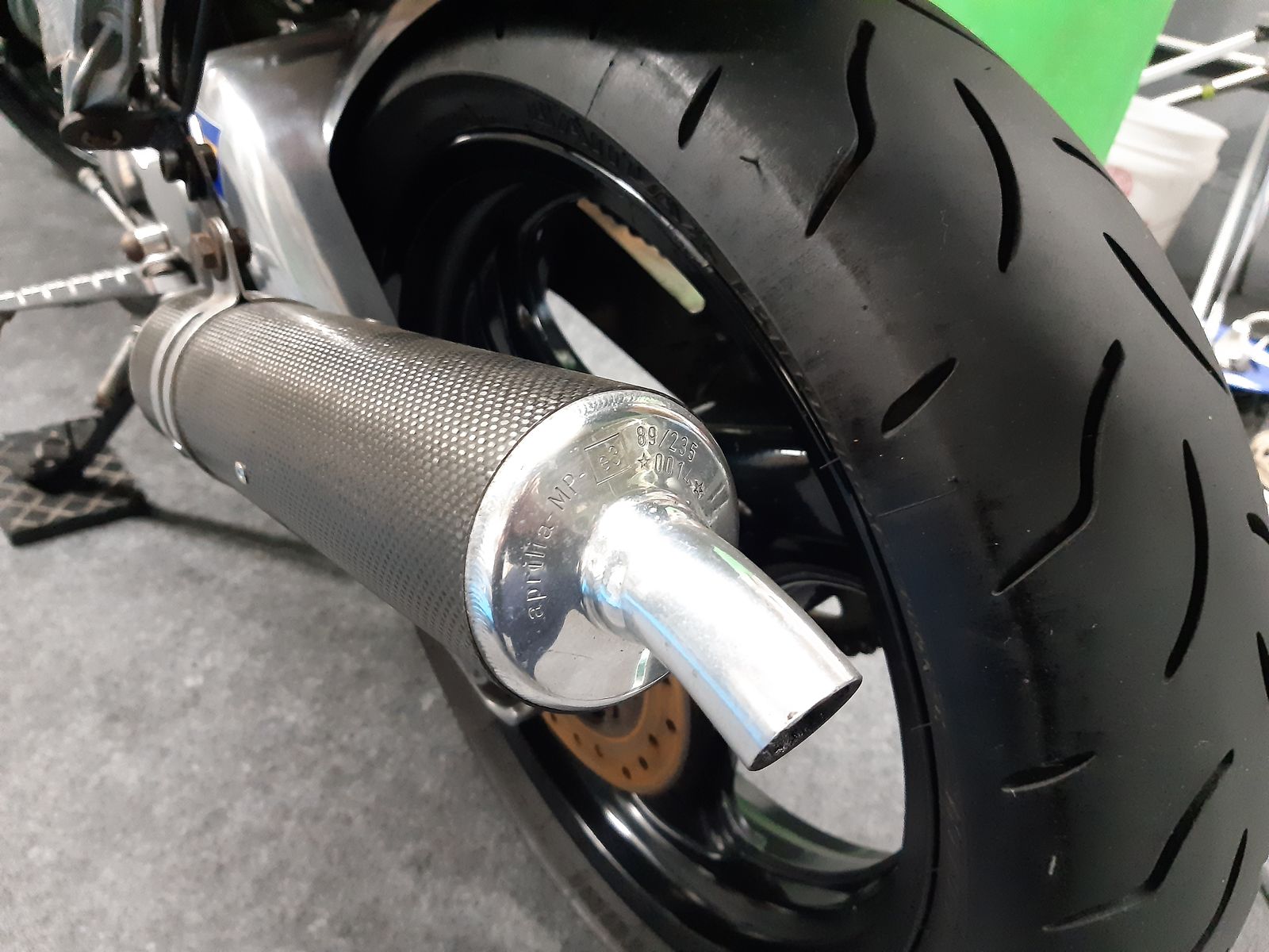 Die kommen auf jeden Fall dran. Davon abgesehen sieht sie aus wie damals, sogar die IP-Aufkleber auf der Schwinge sind noch dran ![]()