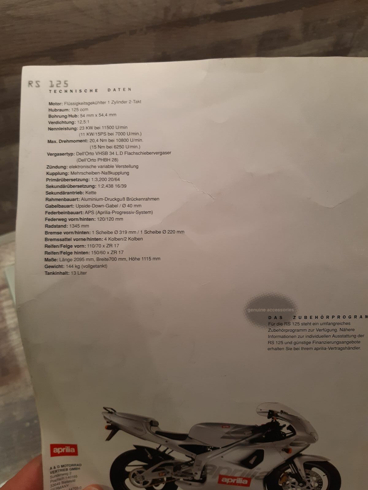 • Aprilia RS 125 Sport Production - Dokumentation?