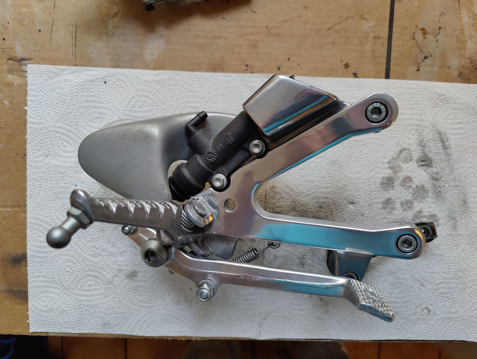 Als Beispiel für das Aufarbeiten der Teile habe ich Mal eine Fußraste angehängt. Wird alles zerlegt, gereinigt, auf Schäden geprüft und dann wieder zusammengesetzt.